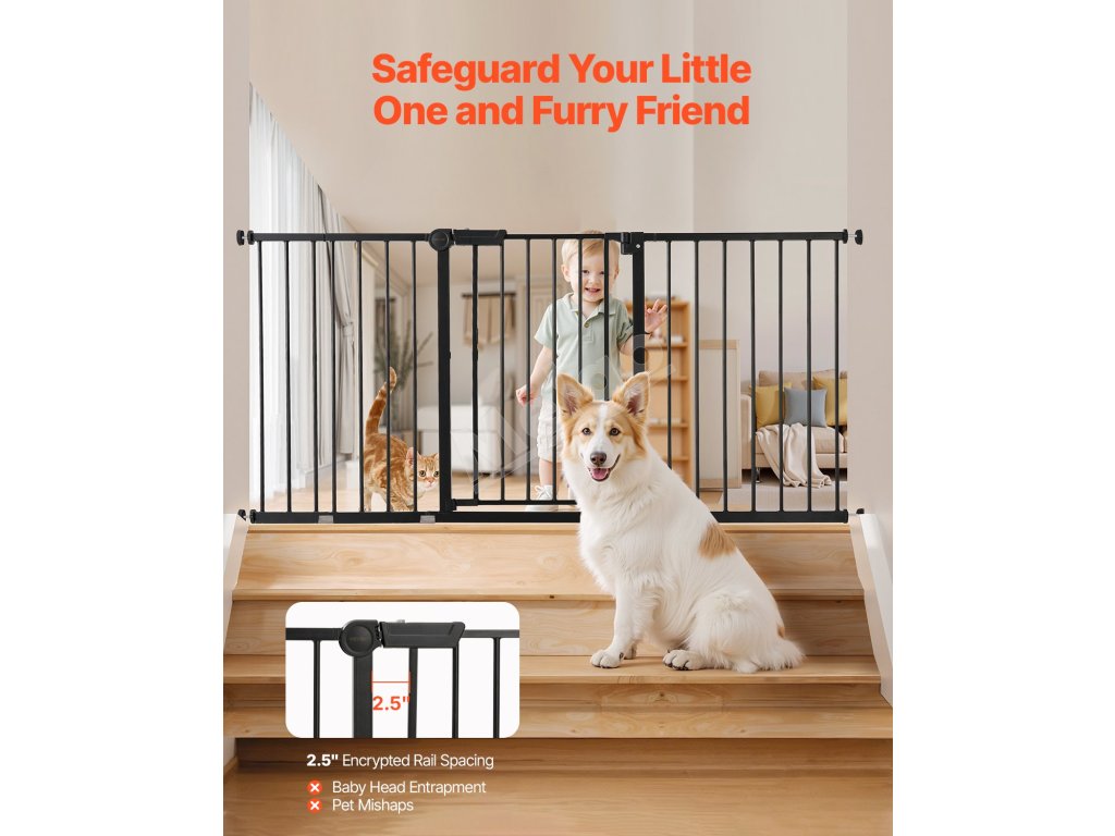 Vďaka úzkemu rozstupu tyčí 2,5" brána pre psov účinne zabraňuje tomu, aby deti prestrčili hlavu cez medzery, čím sa znižuje riziko zranenia. Zabraňuje tiež domácim zvieratám, aby sa pretlačili cez mreže, čím zabezpečuje bezpečnosť detí aj zvierat.