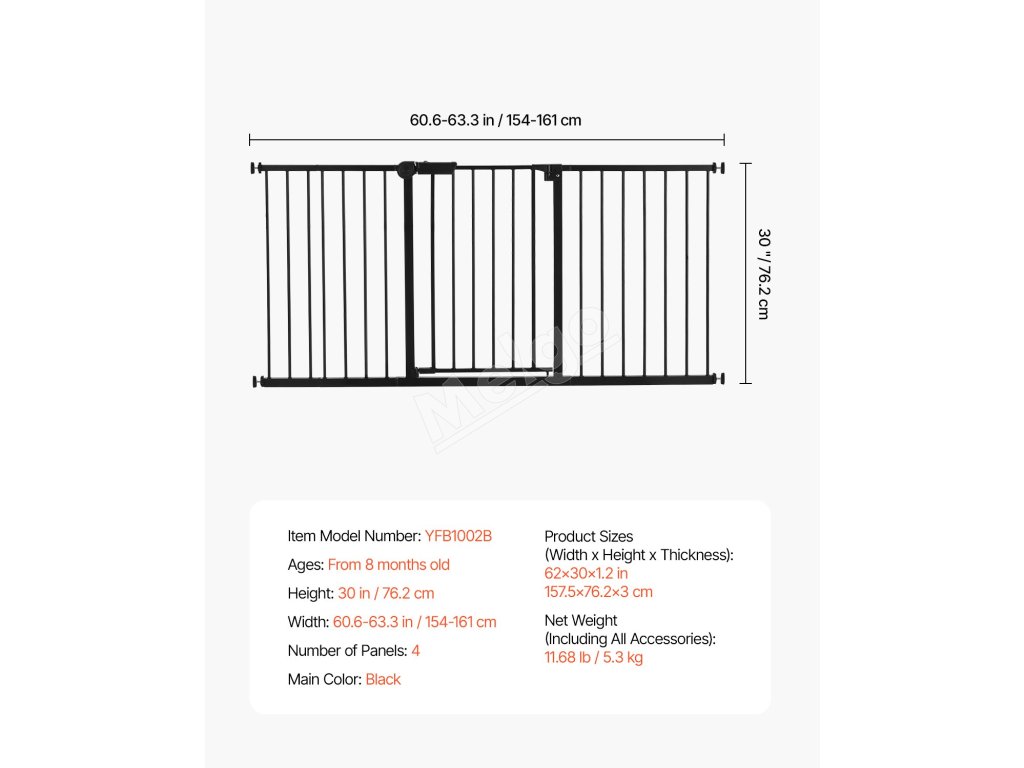 Vďaka maximálnej šírke 63,3 palca / 161 cm sa táto brána hodí do širších dverí, chodieb a vstupov do izieb. Či už ide o priestranný priechod medzi obývacou izbou a jedálňou alebo širšie schodisko vo vile, ideálne sa prispôsobí.