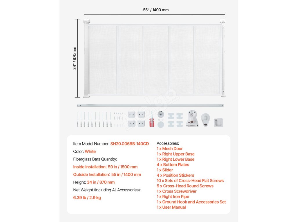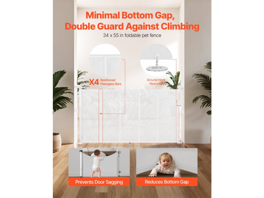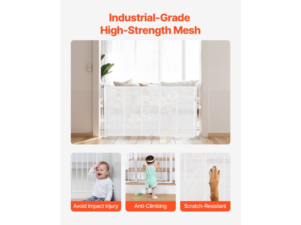 Sťahovacia bezpečnostná bránka 870 mm × 1400 mm, sieťovina, biela