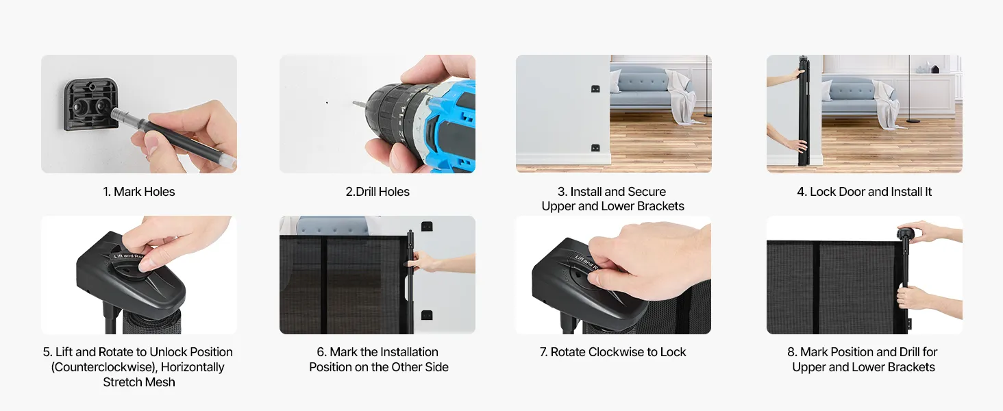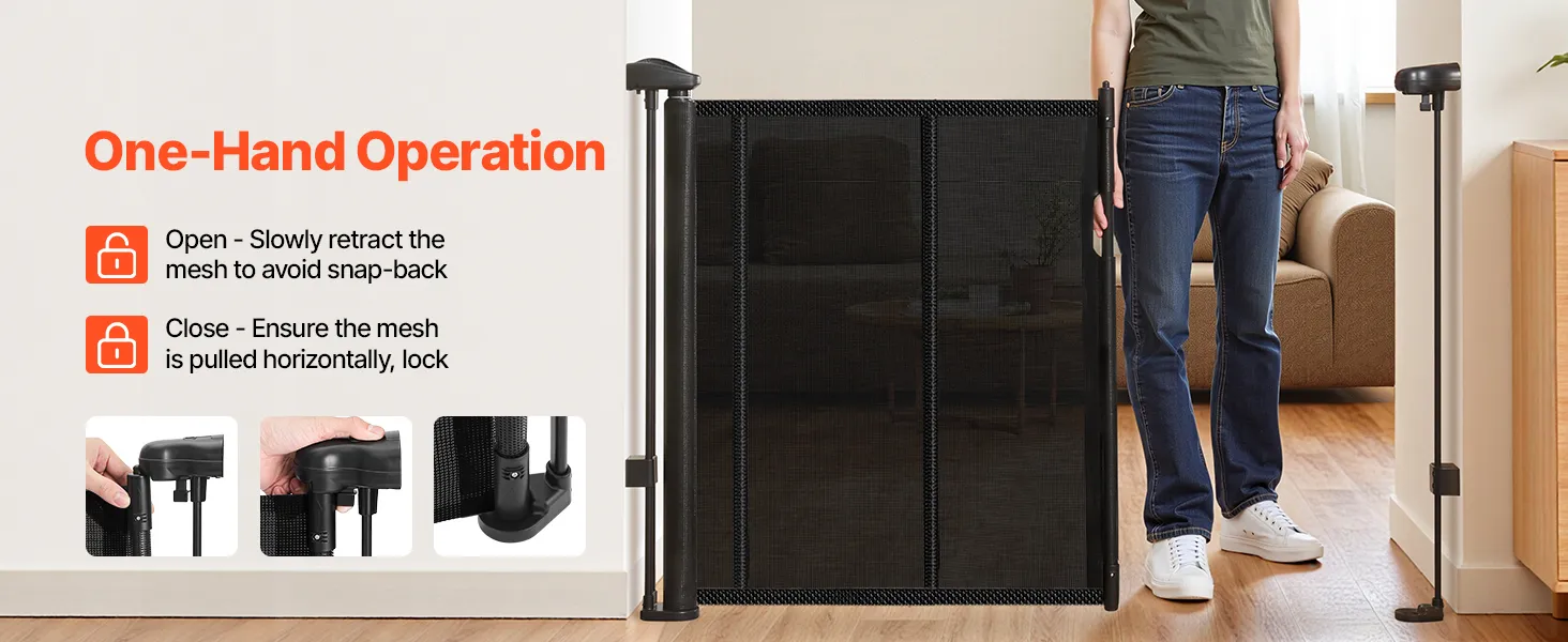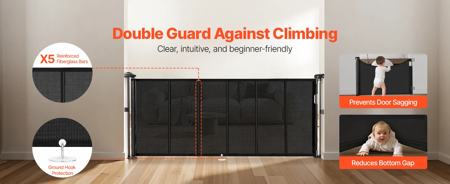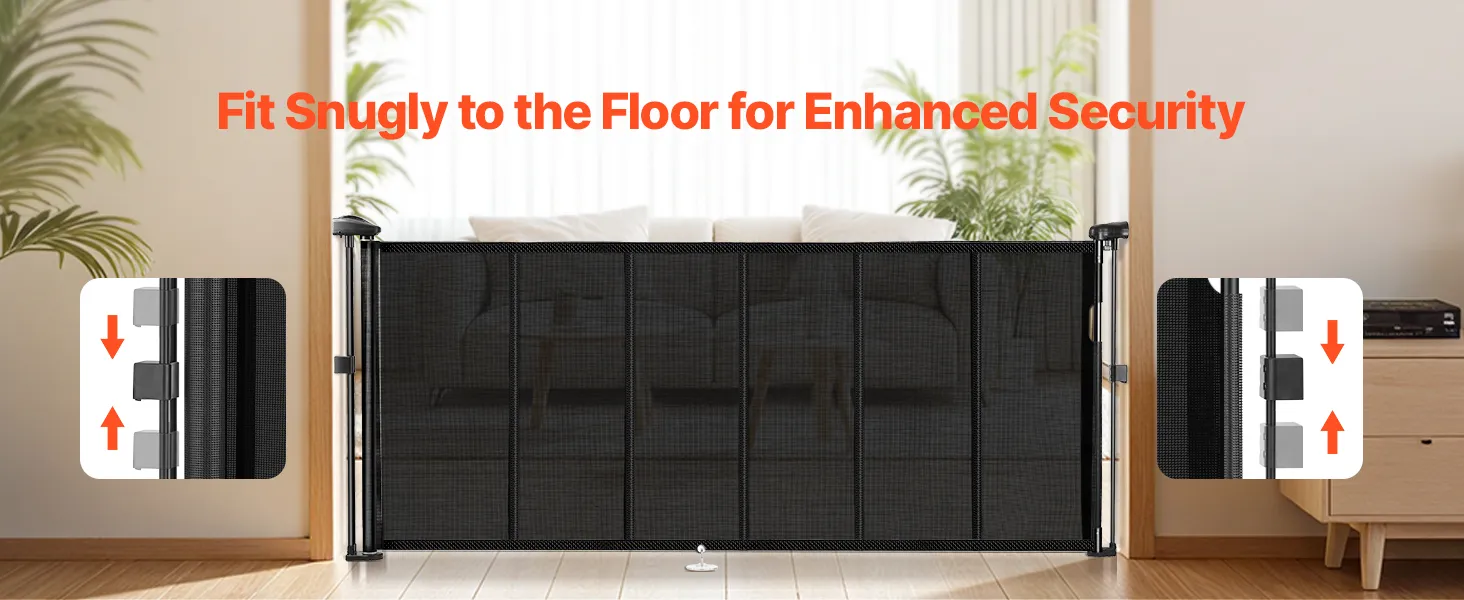 Naše zaťahovacie detské bránky sú vybavené spodnou lištou proti preliezaniu, ktorá zvyšuje úroveň bezpečnosti. Zabezpečuje, že domáce zvieratá alebo deti pod ňou nemôžu ľahko preliezť, čo poskytuje pokoj rodičom a väčšiu bezpečnosť pre domáce zvieratá.