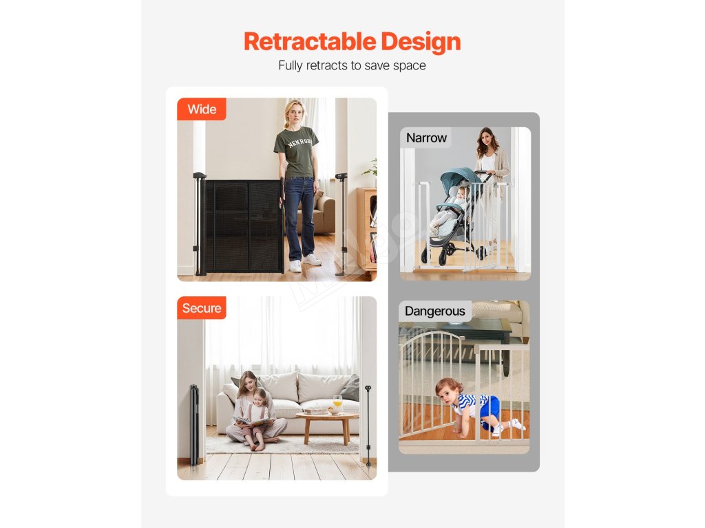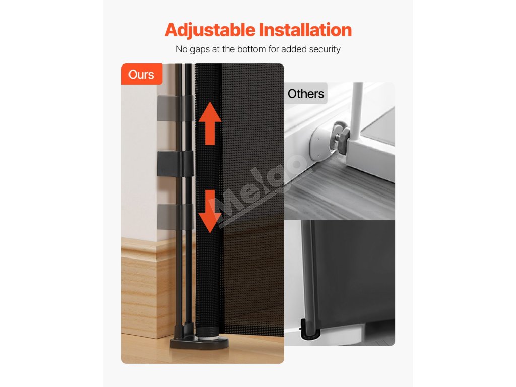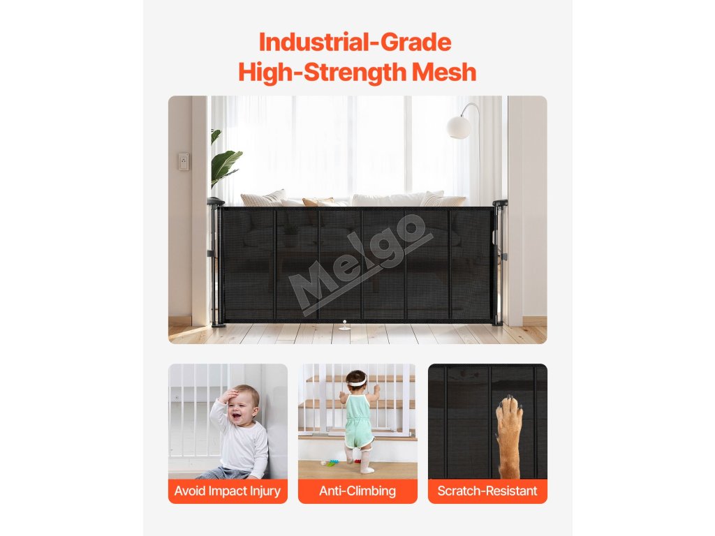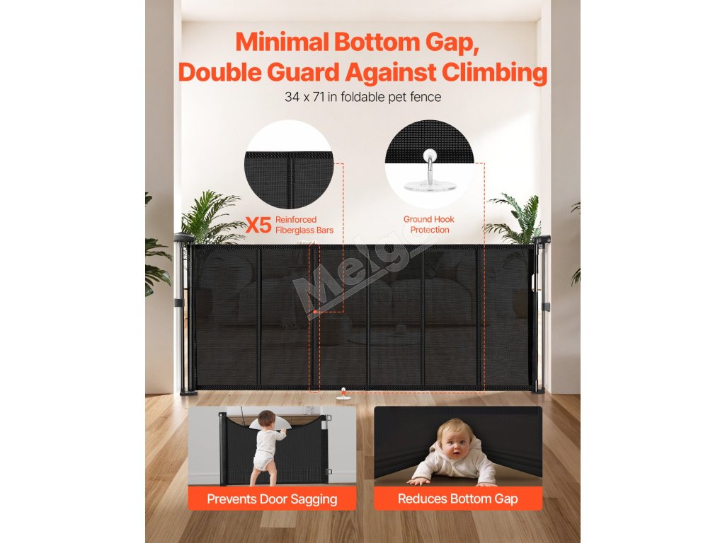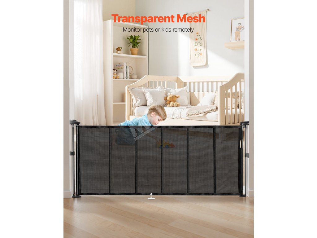 Naše zaťahovacie detské bránky sú vybavené spodnou lištou proti preliezaniu, ktorá zvyšuje úroveň bezpečnosti. Zabezpečuje, že domáce zvieratá alebo deti pod ňou nemôžu ľahko preliezť, čo poskytuje pokoj rodičom a väčšiu bezpečnosť pre domáce zvieratá.