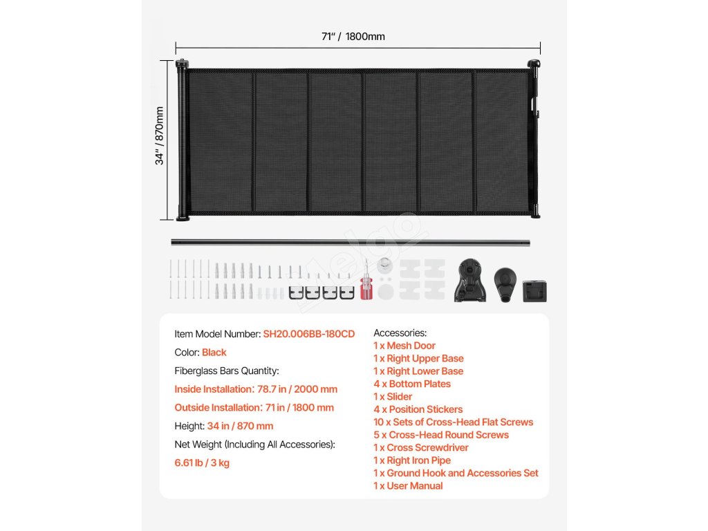 Sťahovacia brána 870 mm vysoká, rozťahovacia do 1800 mm, sieťovina