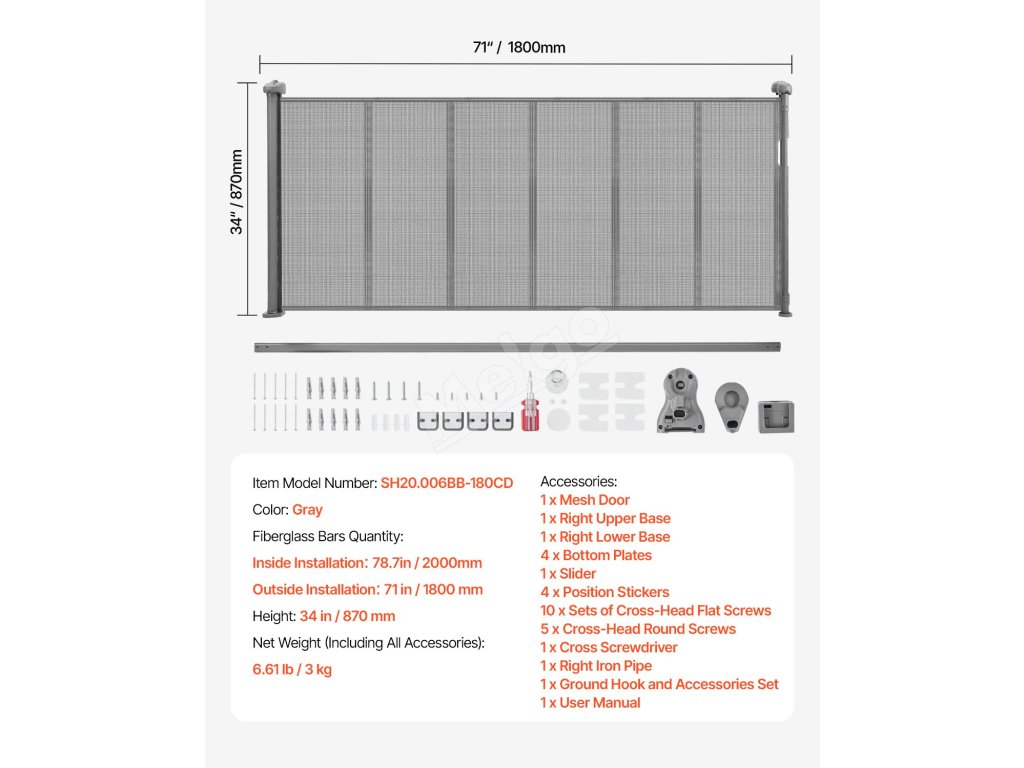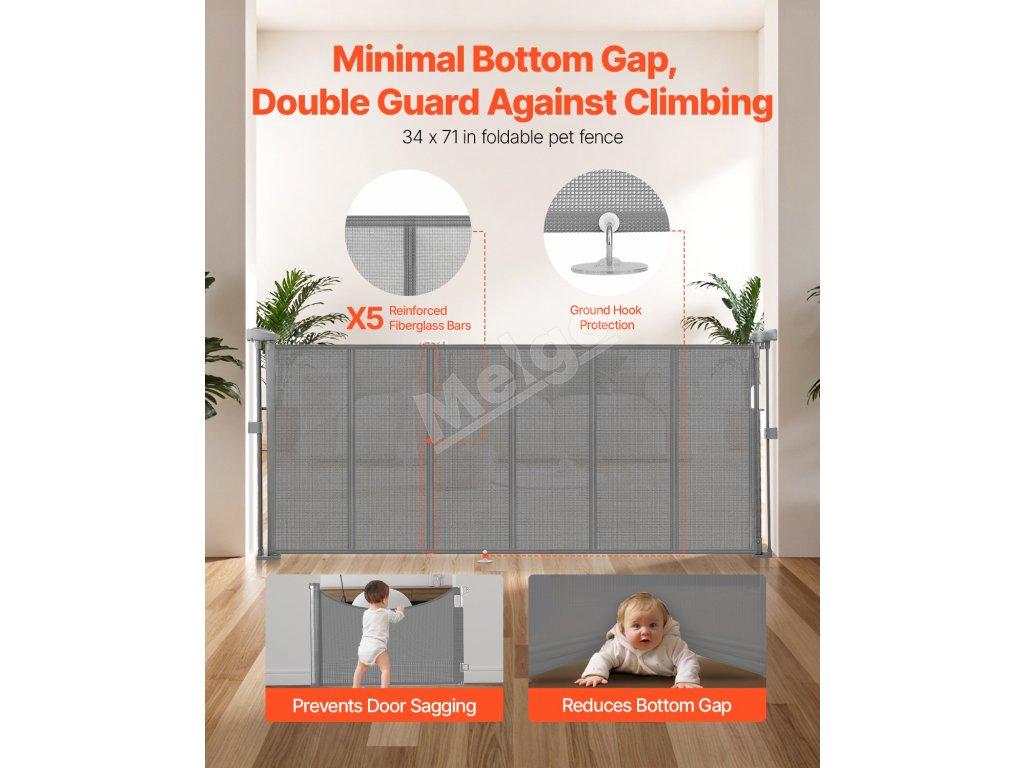 Stahovacia bránka pre deti a zvieratá 870 mm × 1800 mm sieťovina