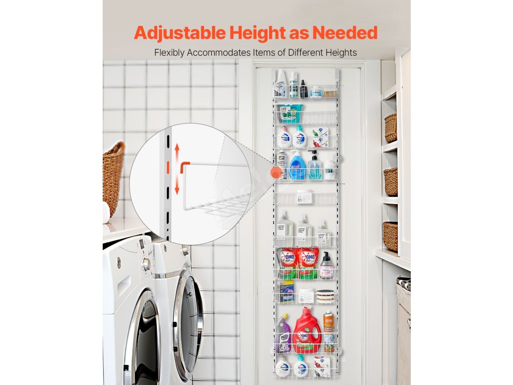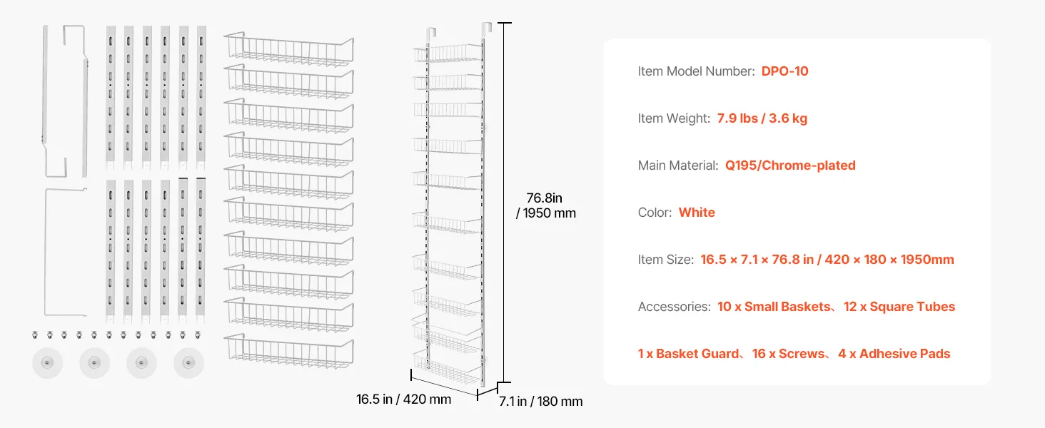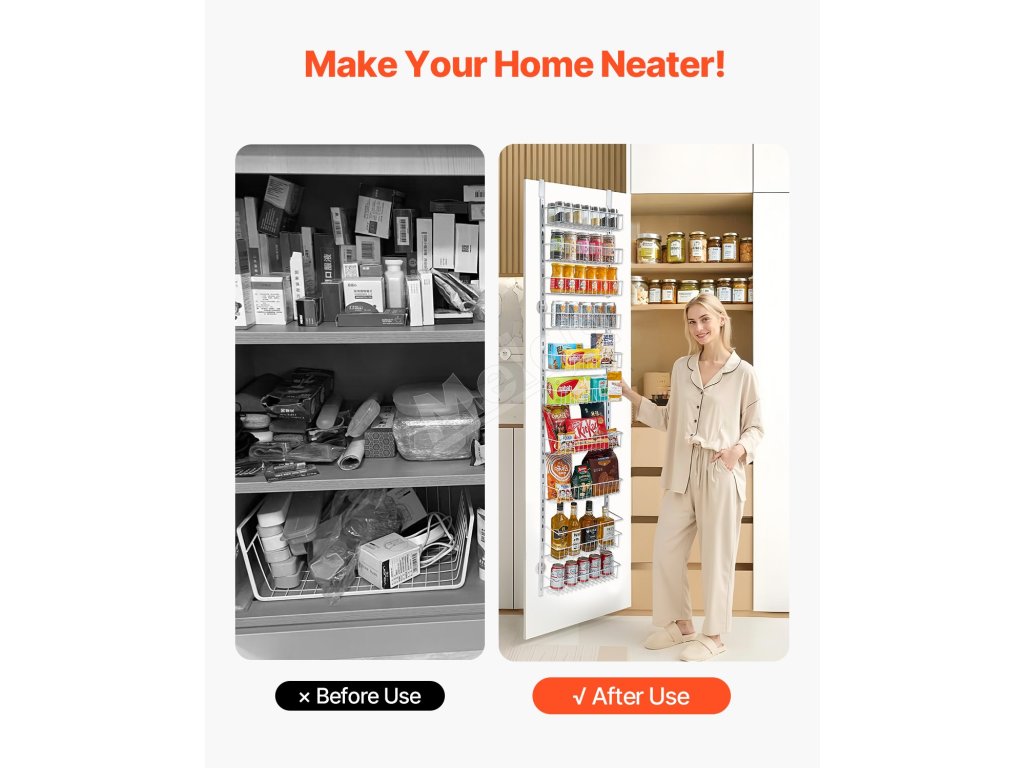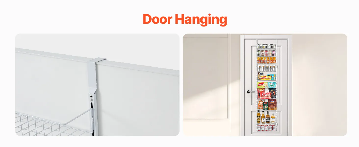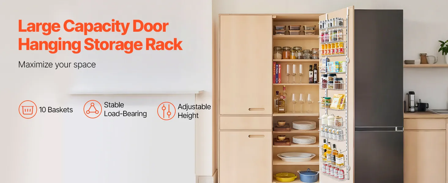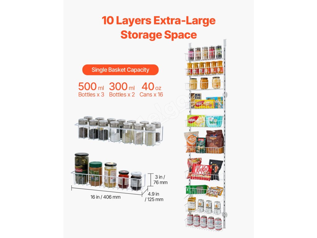 Tento organizér do špajze nad dvere obsahuje 10 veľkých košov, ktoré maximalizujú vašu úložnú kapacitu! Môžete ho použiť ako organizér na dvere špajze, stojan na korenie alebo organizér na skladovanie v skrini - ideálny pre malé priestory.