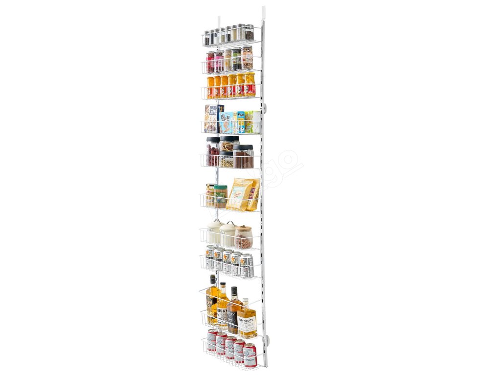 Závesný organizér na dvere špajzy, 10 políc, oceľ, nastaviteľný, biely
