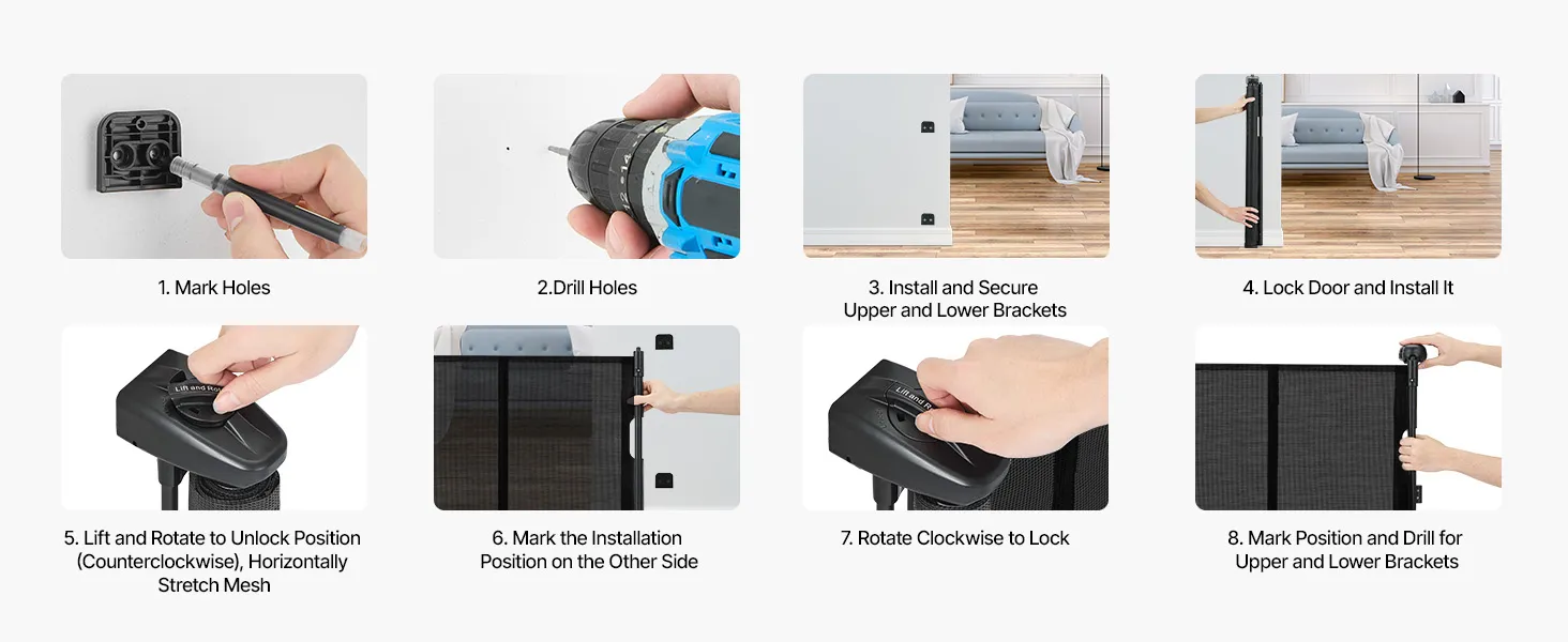 Bezpečné zemné kotvy udržia bránu pevne na mieste, aj keď domáce zvieratá tlačia alebo skáču. Žiadne prevracanie, žiadne posúvanie - len stabilná a spoľahlivá bezpečnostná bariéra.
