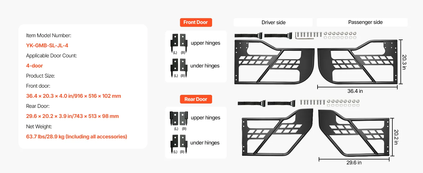 Trubkové 4-dverové dvere s pántmi a oe západkou pre JL/JT 2018–2024
