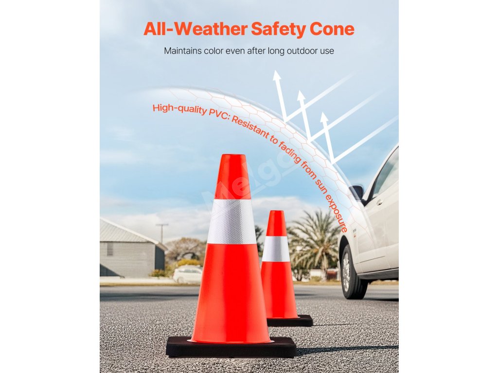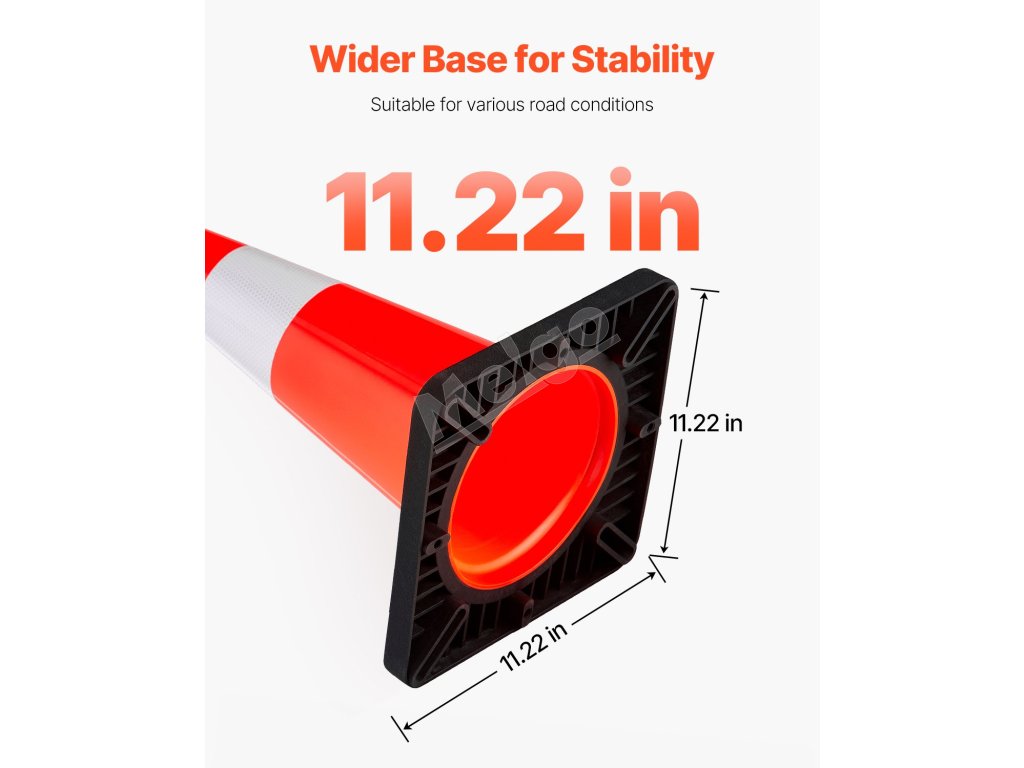 Naše dopravné kužele sú vysoko odolné a nie je ľahké ich strhnúť vetrom. Dôvodom je veľká zaťažená základňa s rozmermi 11" x 11", ktorá je taká pevná a dokáže dlhodobo odolávať vonkajším vplyvom.