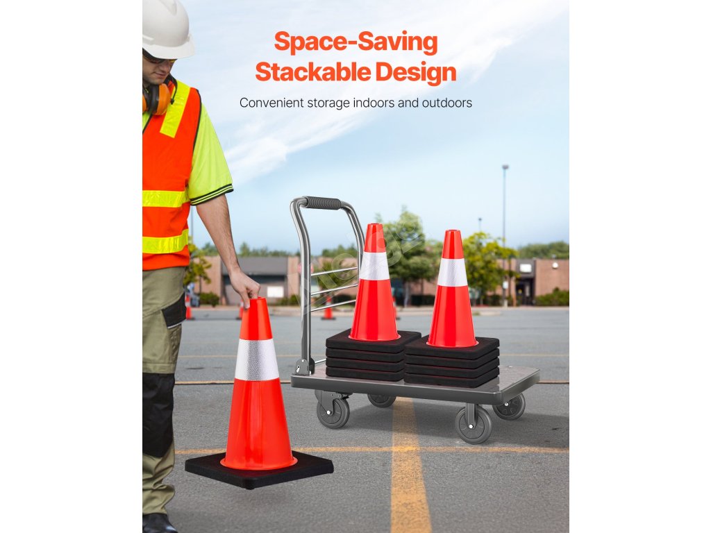 Naše stavebné kužele sú navrhnuté špeciálne na jednoduché stohovanie. Ak ich uložíte do auta, všetky dopravné kužele sa môžu priebežne prekrývať a nezaberú príliš veľa miesta.