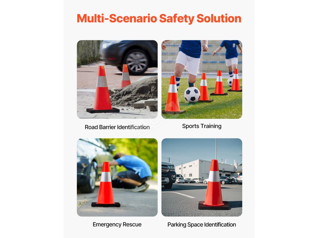 Naše bezpečnostné kužele sa dajú široko použiť na osobných alebo verejných priestranstvách, ako sú záhrady, parkoviská, cesty a námestia. Vytvorte výstražný priestor alebo zabezpečte bezpečné miesto na hranie pre deti na príjazdovej ceste alebo na detskom ihrisku.