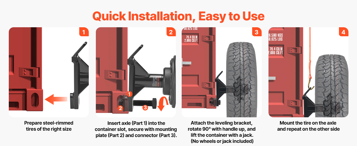 Súpravu náprav na prepravné kontajnery môžete nastaviť len v 3 krokoch. Je to rýchle a jednoduché, šetrí to čas a námahu a umožňuje vám sústrediť sa na skutočnú prácu namiesto toho, aby ste sa trápili s nastavovaním.