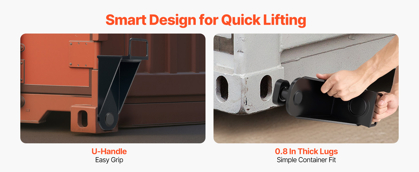 Každý zdvihák prepravného kontajnera unesie až 12 500 libier, vďaka čomu je vyrovnávanie kontajnera rýchle a jednoduché. Oceľ odolná proti korózii zaručuje dlhodobé používanie, zatiaľ čo dizajn s 2 baleniami pokrýva viaceré potreby zdvíhania.