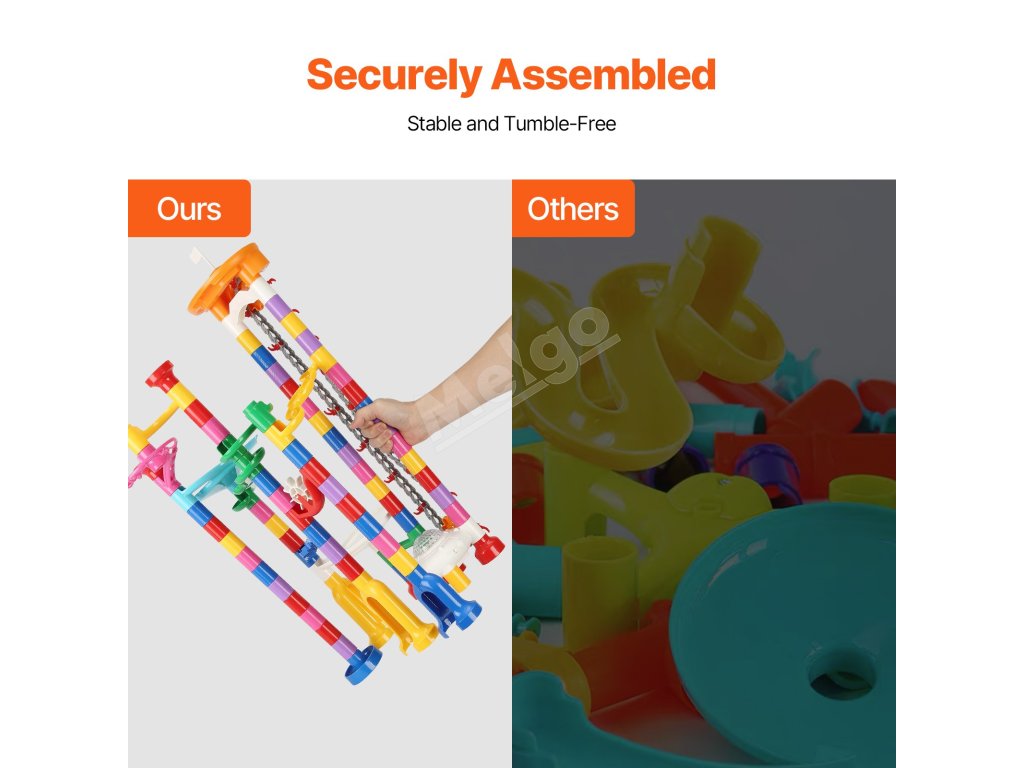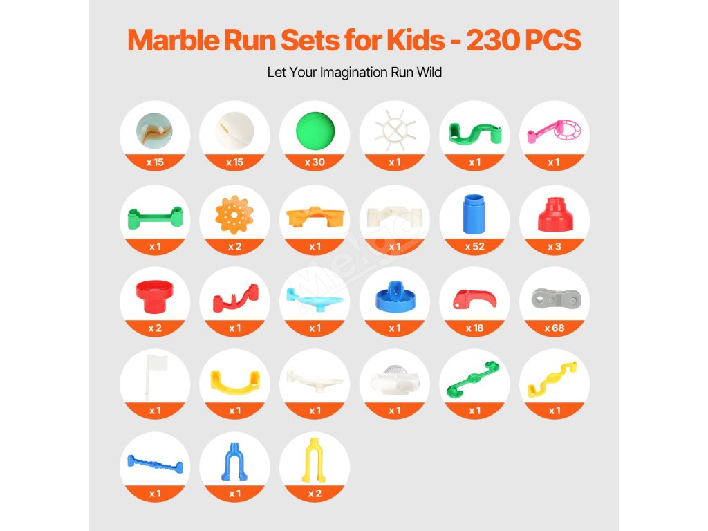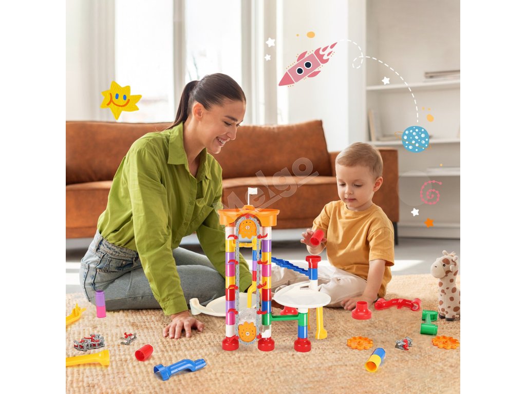 Táto súprava s mramorovou dráhou umožňuje deťom užívať si preteky a stavať vlastné výtvory. Deti si môžu navrhnúť vlastné dráhy mramorového labyrintu, čím podporia svoju kreativitu a schopnosť riešiť problémy. Zatiaľ čo sa zabávajú, pomáha rozvíjať aj ich mozgovú kapacitu a priestorovú predstavivosť. Ideálne na zábavu a učenie!
