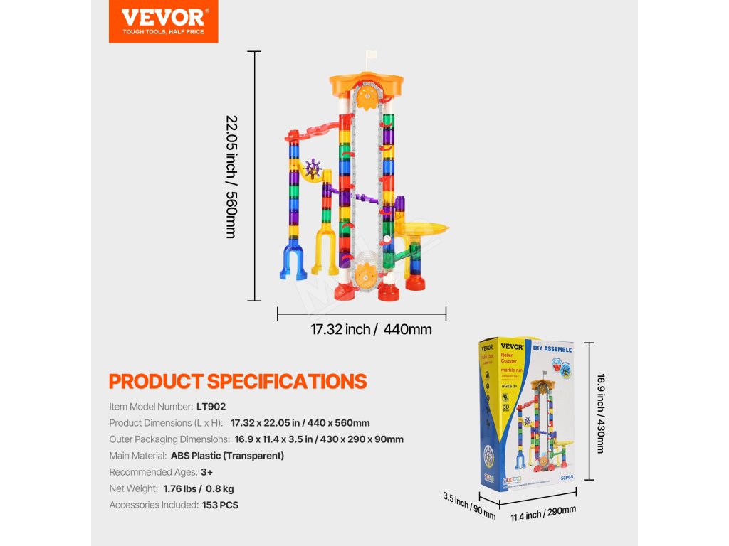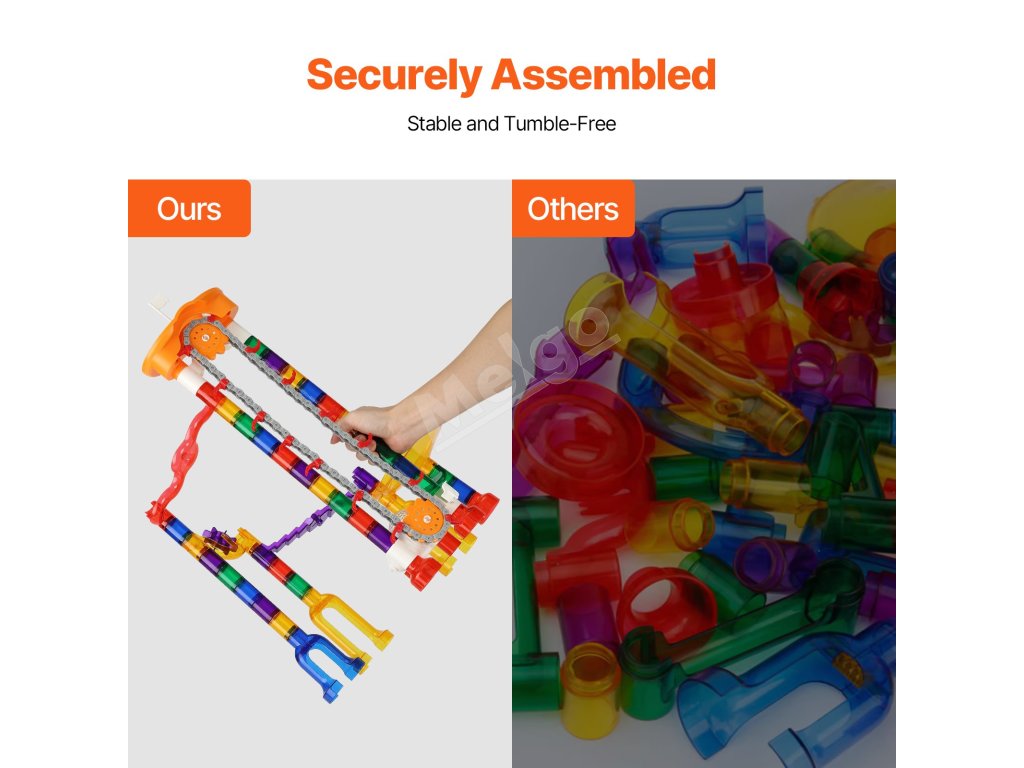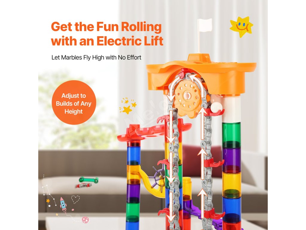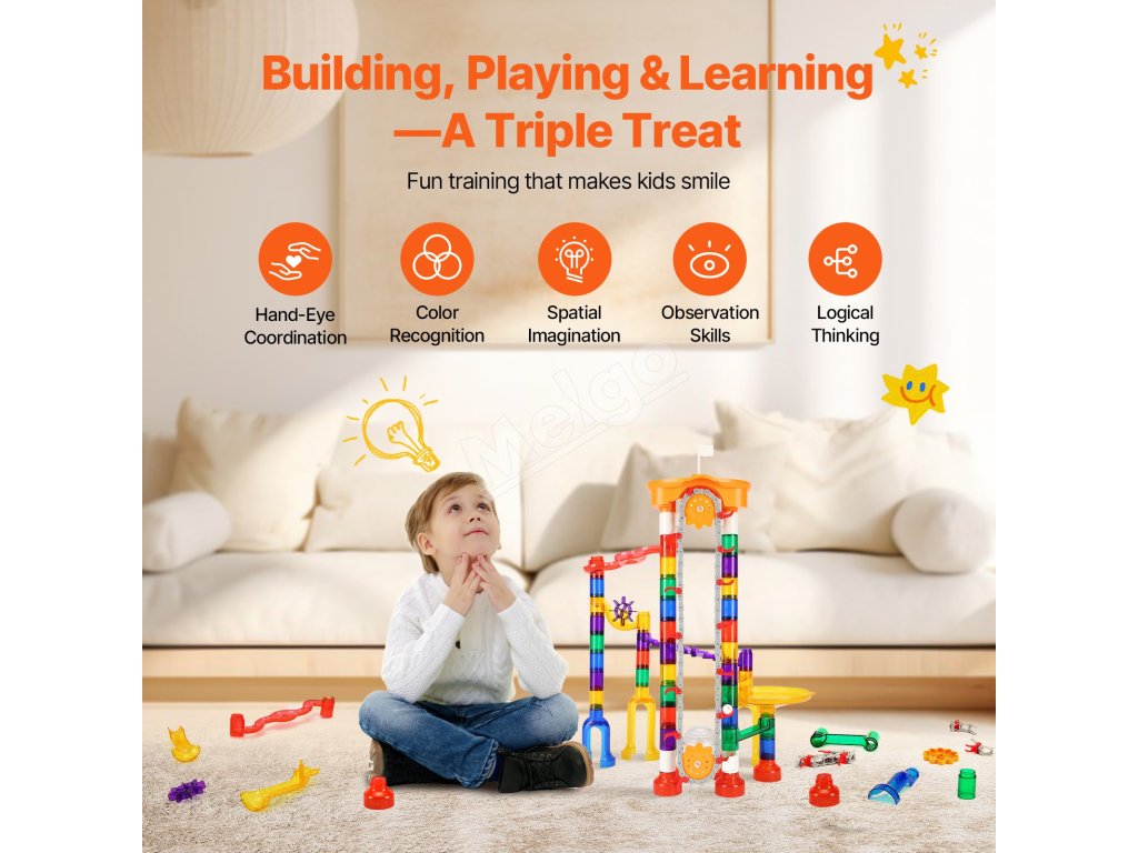 Táto súprava s mramorovou dráhou umožňuje deťom užívať si preteky a stavať vlastné výtvory. Deti si môžu navrhnúť vlastné dráhy mramorového labyrintu, čím podporia svoju kreativitu a schopnosť riešiť problémy. Zatiaľ čo sa zabávajú, pomáha rozvíjať aj ich mozgovú kapacitu a priestorovú predstavivosť. Ideálne na zábavu a učenie!