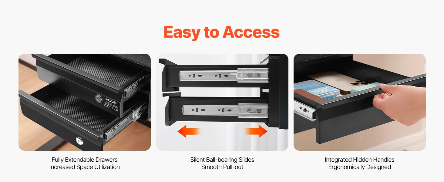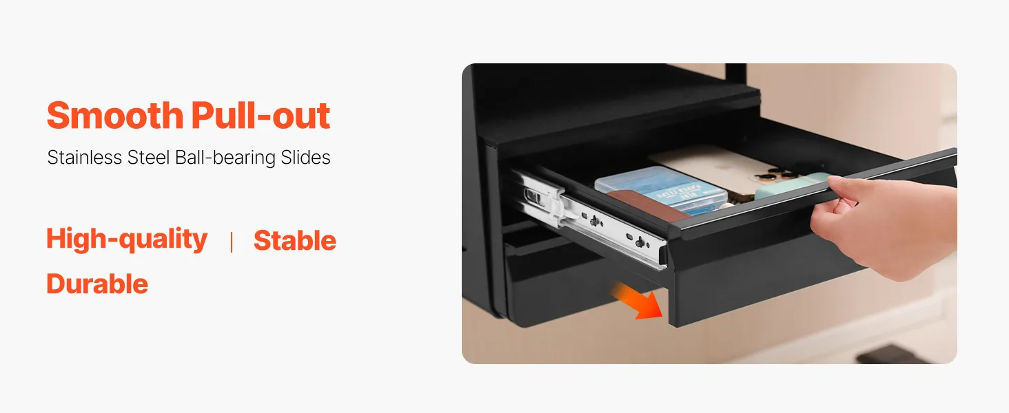 Táto zásuvka pod stôl sa dodáva s dvoma samostatnými uzamykateľnými časťami, z ktorých každá má nosnosť 11 kg. Pridá vám cenný úložný priestor pod stolom. Uzamykateľná konštrukcia zaručuje, že vaše cenné predmety zostanú v bezpečí a mimo dosahu, čím sa zabráni náhodnej strate alebo krádeži.