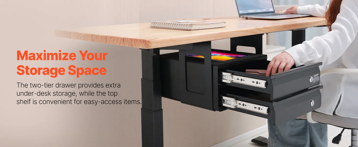 Výsuvná zásuvka pod stôl 2 vrstvy skrytá zamykateľná 14×13×10 in
