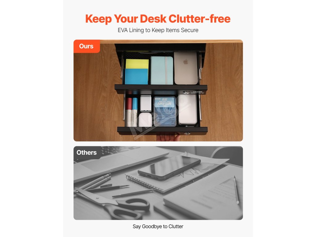 Výsuvná zásuvka pod stôl 2 vrstvy skrytá zamykateľná 14×13×10 in