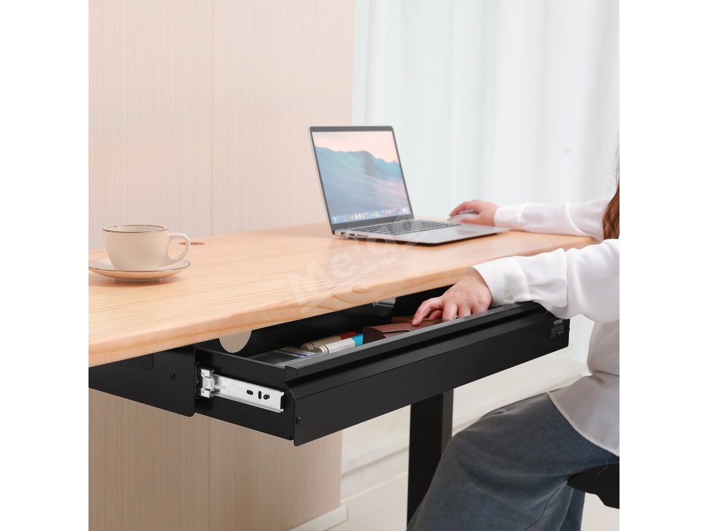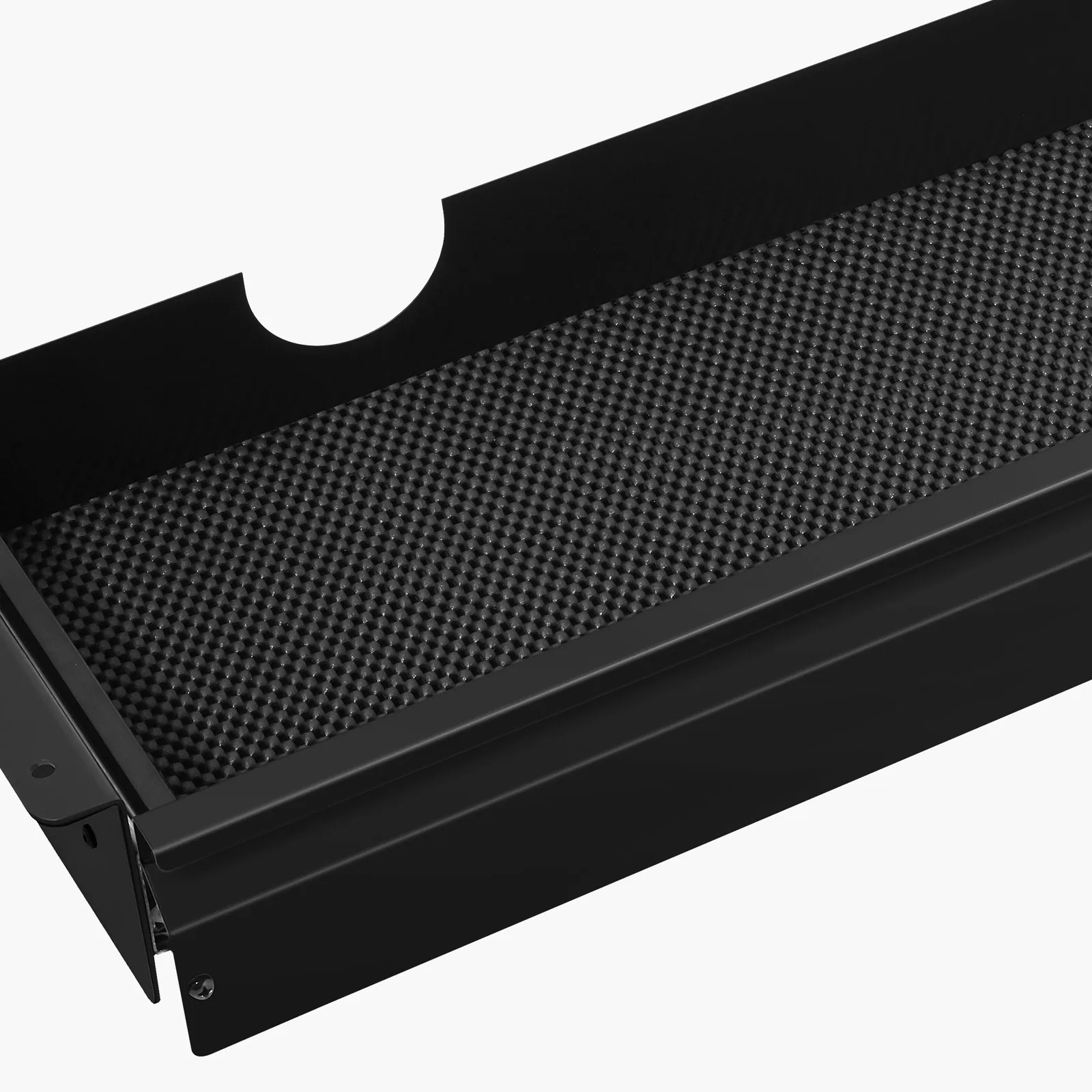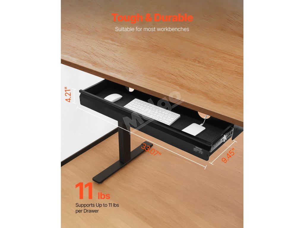 Táto 33-palcová zásuvka pod stolom slúži ako zásuvka aj ako priehradka na klávesnicu. S výškou len 3,2 palca poskytuje dodatočný úložný priestor bez toho, aby bol ohrozený priestor na nohy. Udržujte si poriadok a efektivitu na stole a zároveň majte dostatok priestoru na pohodlný pohyb pod stolom.