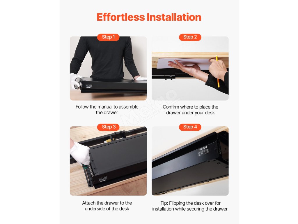 Výsuvná zásuvka pod stôl 33×9×4 in, montáž pod pracovnú dosku