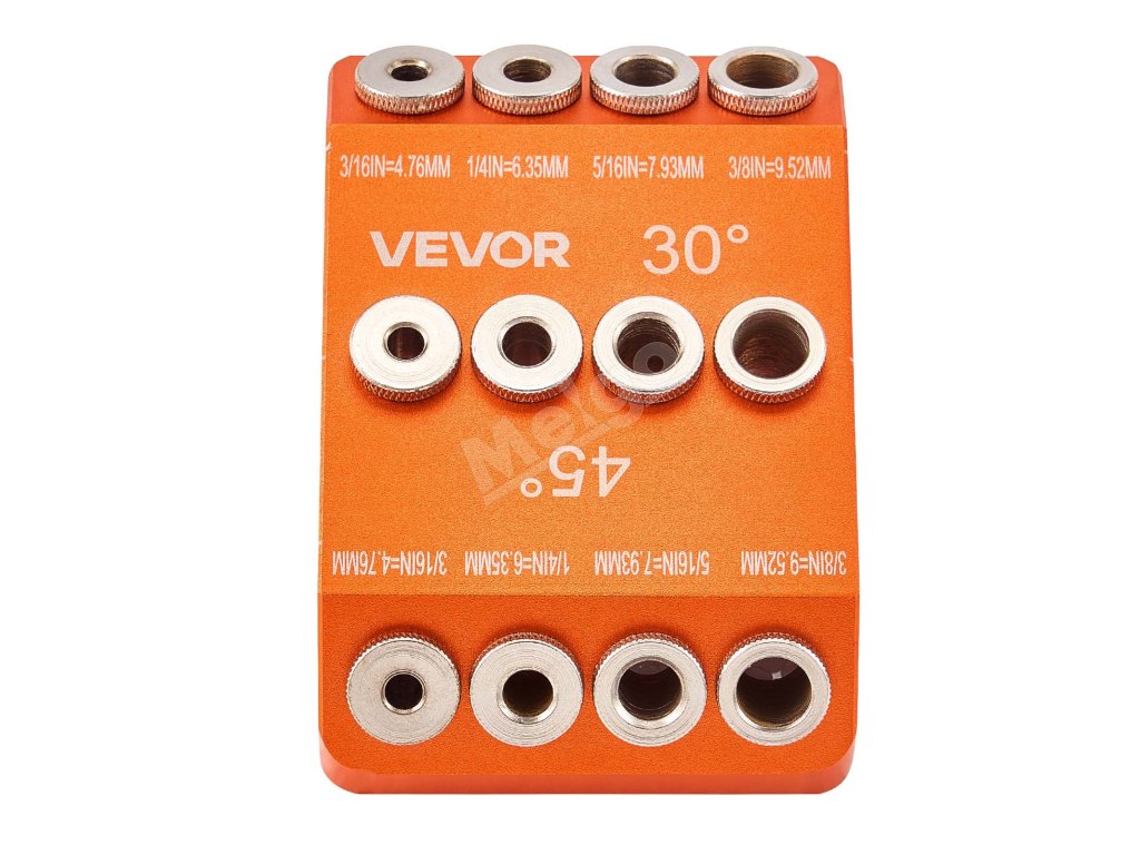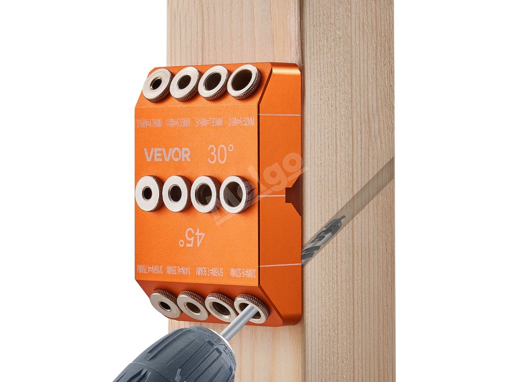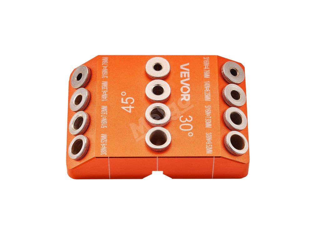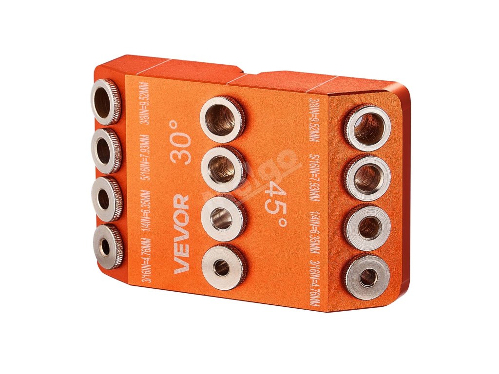 Vodič na vŕtanie 30°/45°/90°, 4 veľkosti, hliník, na zábradlia