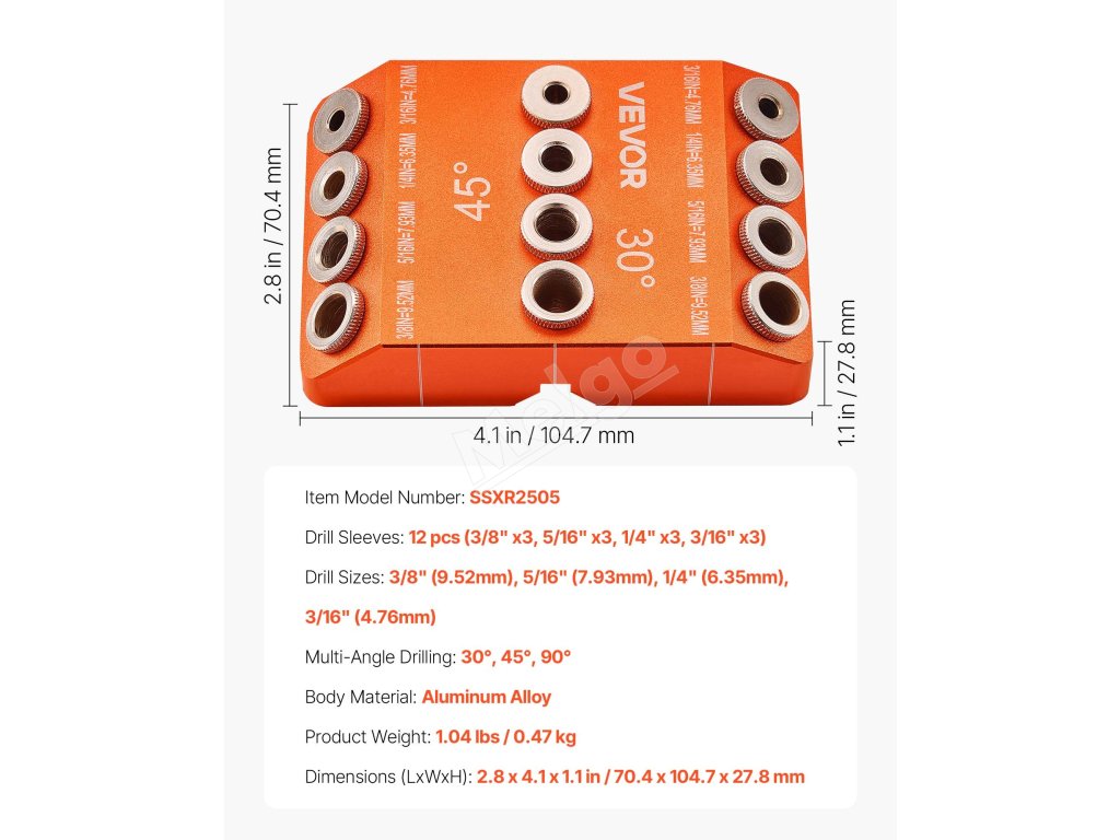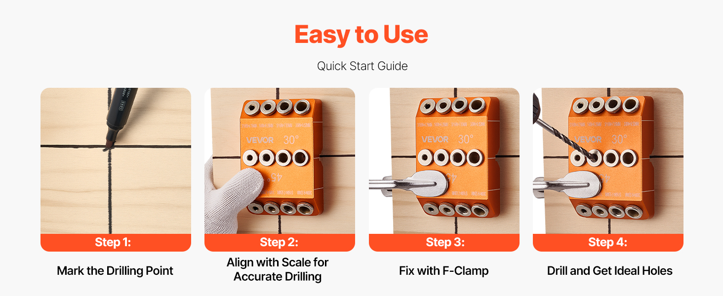 Je navrhnutý pre jednoduchosť, stačí upevniť vŕtacie vodidlo na obrobok a vŕtať rýchlo a presne. Jeho jednoduchý dizajn ho robí prístupným pre všetky úrovne zručností.