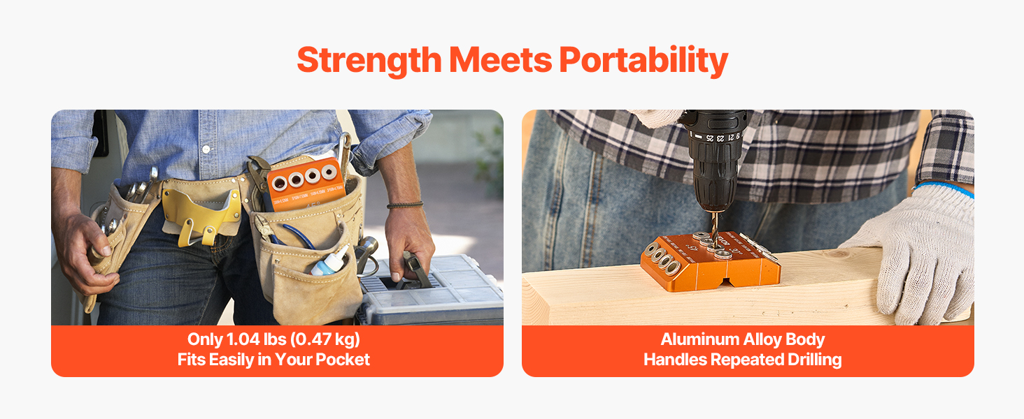 S hmotnosťou iba 1,04 libry (0,47 kg) je tento vodiaci prípravok na vŕtanie vhodný do vrecka na vŕtanie na cestách. Vyrobený z prvotriednej hliníkovej zliatiny poskytuje výnimočnú odolnosť, takže je ideálny na rôzne náročné úlohy.