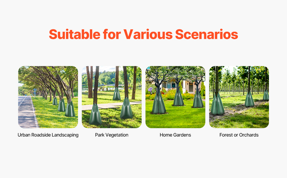 Či už ide o domáce záhrady, sady alebo mestskú zeleň, tieto vrecká účinne zavlažujú stromy v rôznych prostrediach.