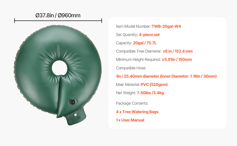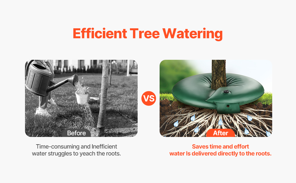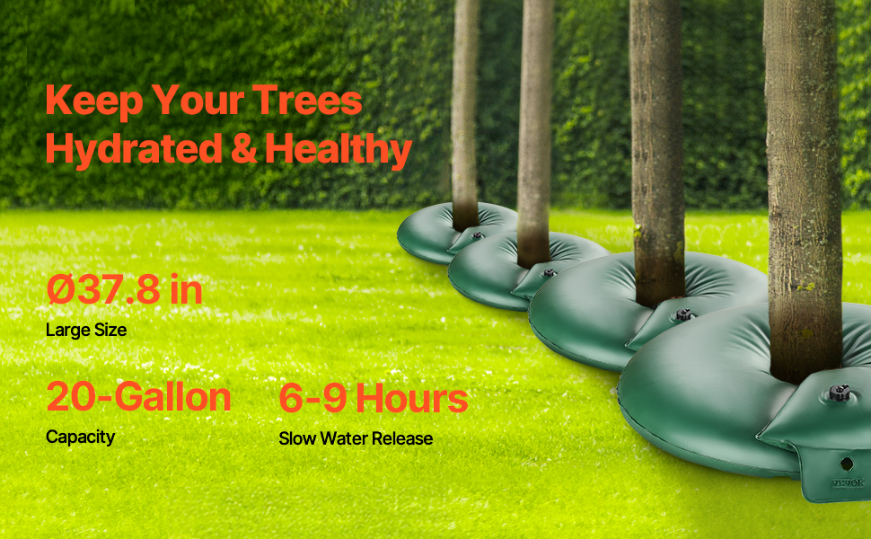 Tento zalievací krúžok poskytuje spoľahlivú hydratáciu pre novovysadené stromy alebo stromy citlivé na sucho. S kapacitou 20 galónov (75,7 l) uvoľňuje vodu pomaly počas 6 až 9 hodín a vyživuje korene stromov. Znižuje potrebu častého ručného zavlažovania, čím šetrí vodu, čas, námahu a peniaze.