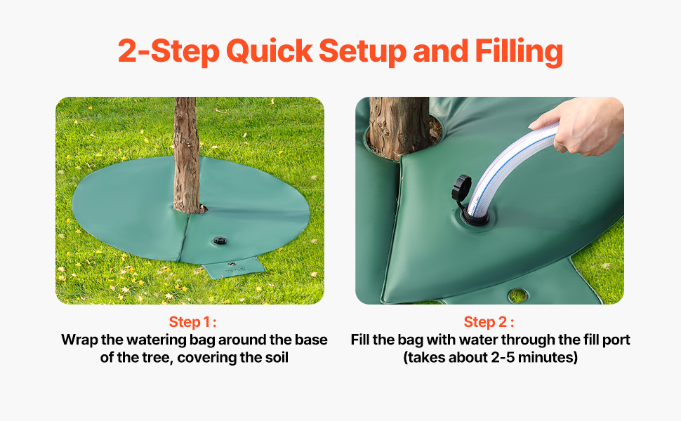 Nevyžaduje sa žiadne náradie ani zložité nastavenie. Stačí pripojiť bežnú záhradnú hadicu, aby ste vrecko rýchlo naplnili vodou a začali zavlažovať.