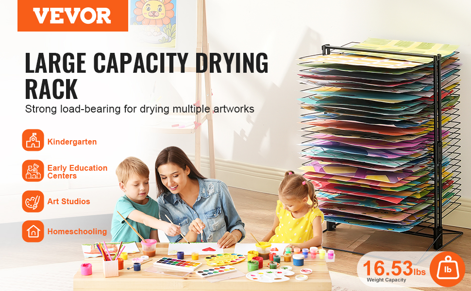 Tento stojan na sušenie farieb s nosnosťou 16,53 kg je ideálny na uloženie viacerých diel, pričom udržiava prúdenie vzduchu, aby sa urýchlilo sušenie. Je vhodný do škôl, škôlok, umeleckých ateliérov a na domáce vzdelávanie, možno doň umiestniť rôzne umelecké diela, ako je papier, ručné kresby a plátno.