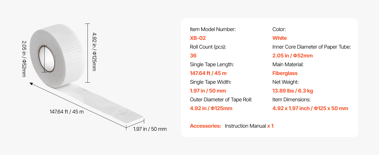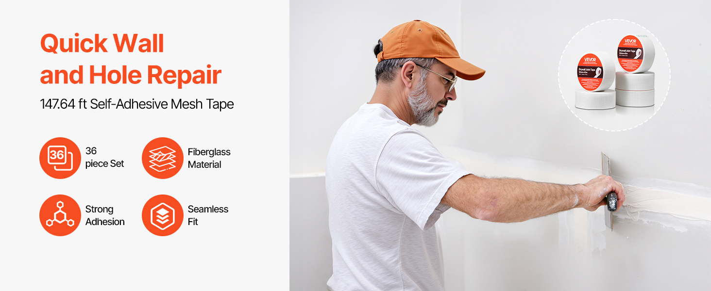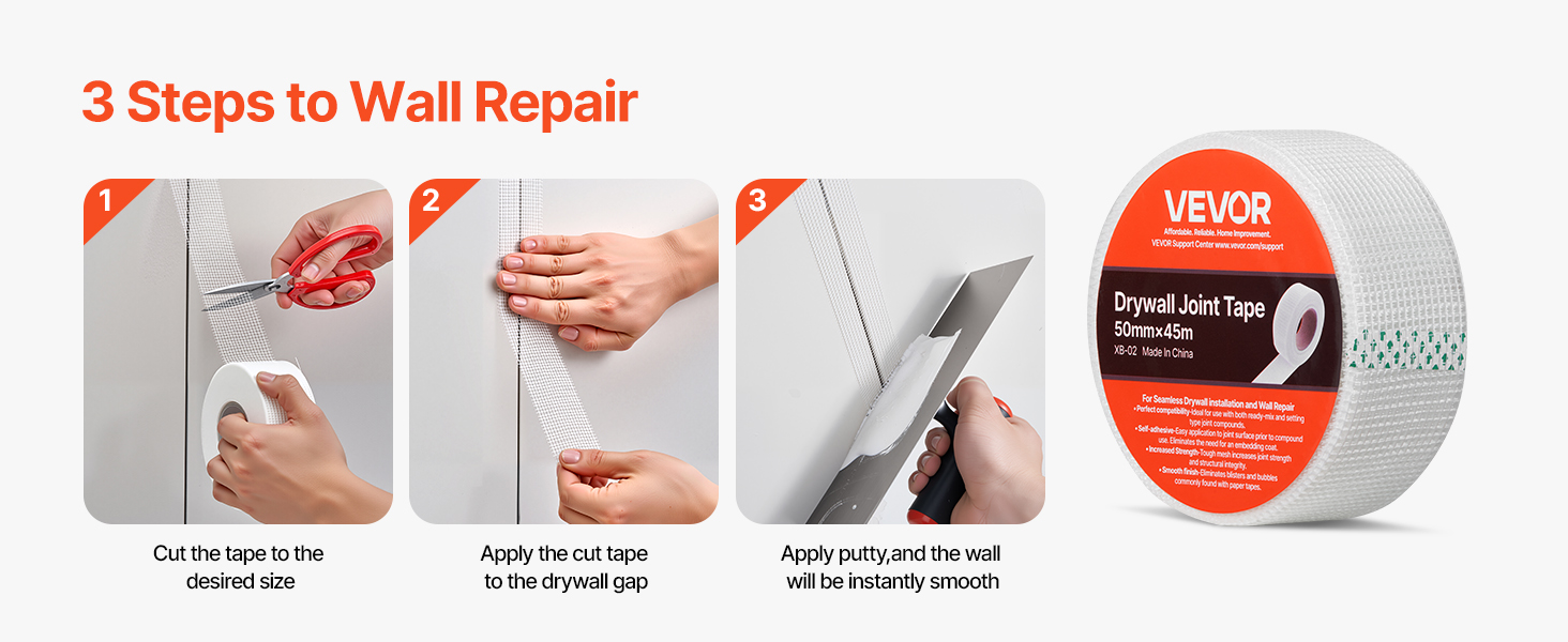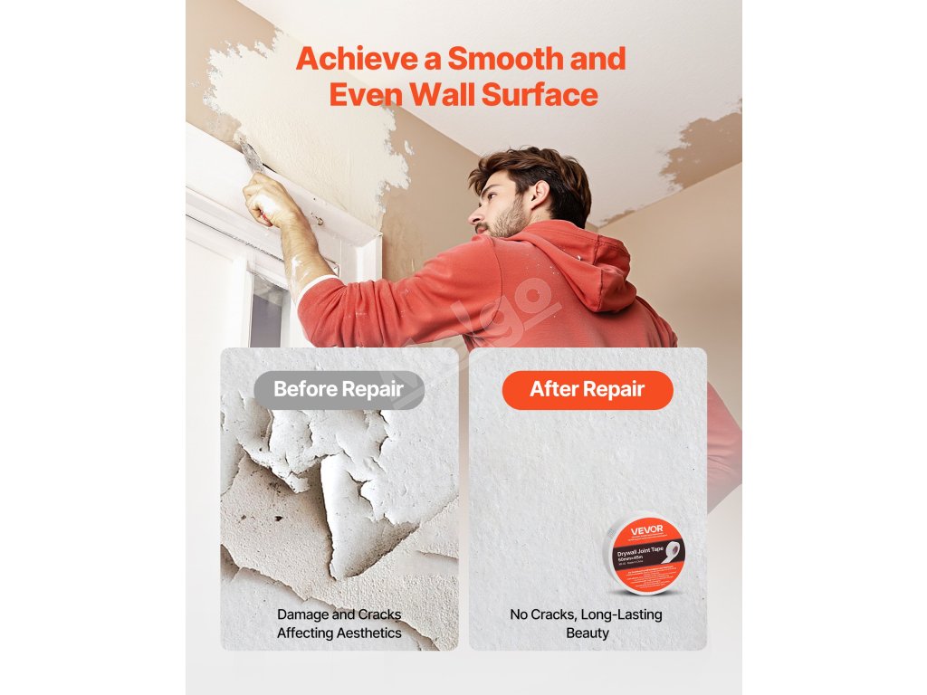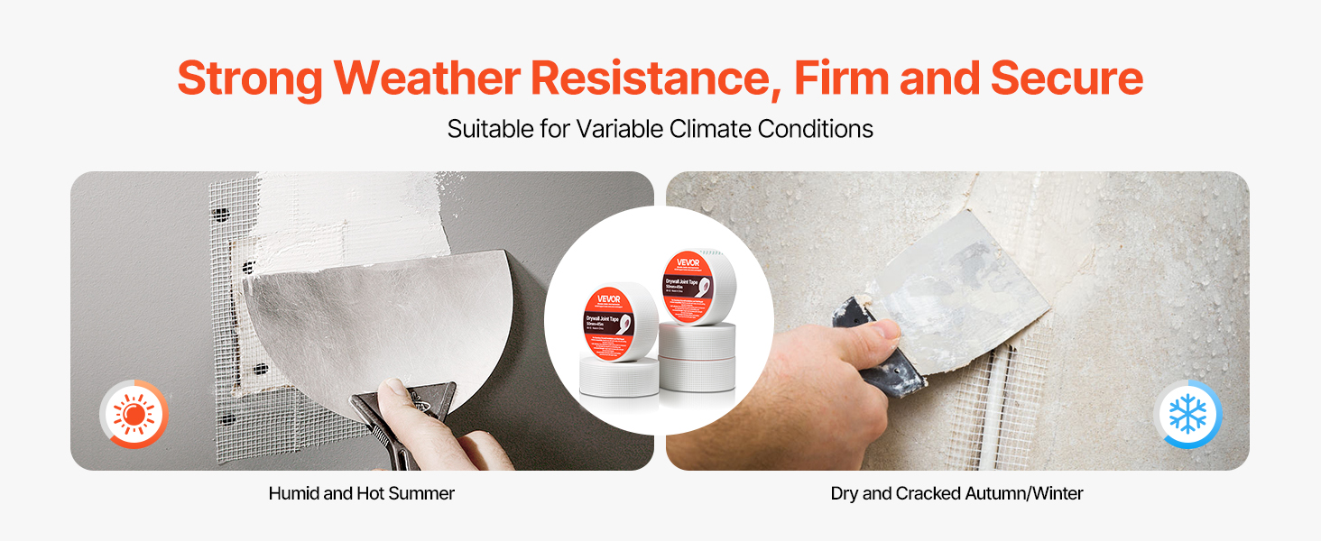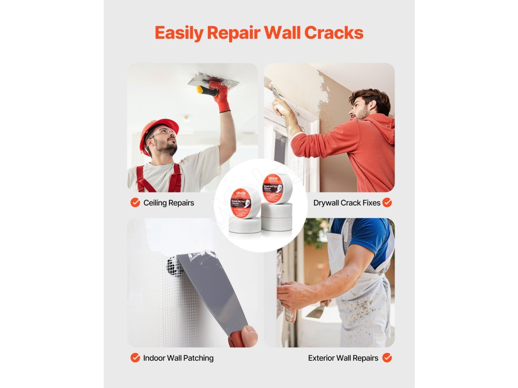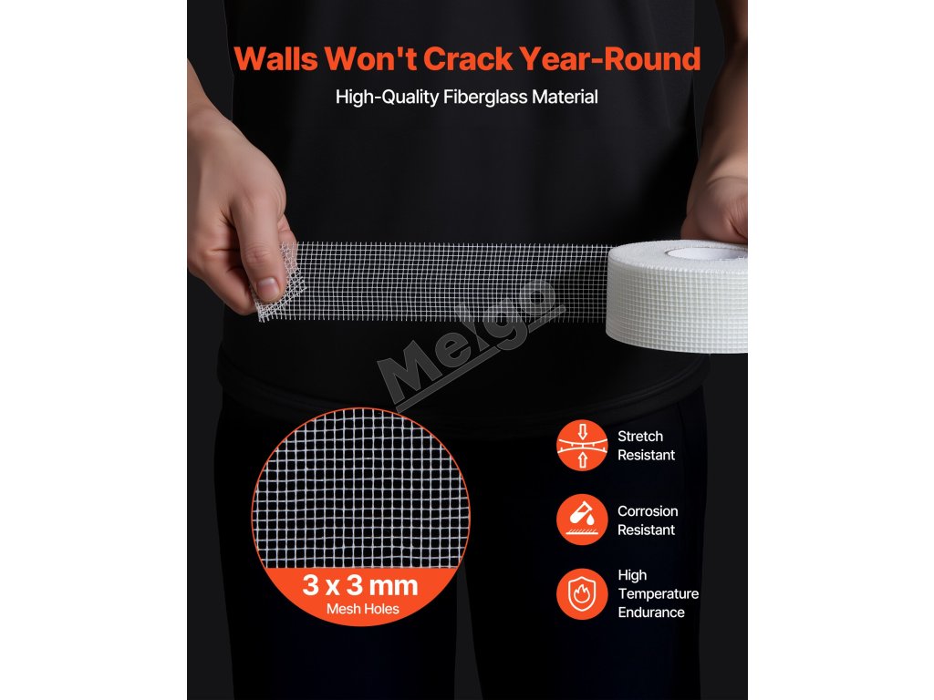 Táto páska na sadrokartónové dosky ľahko opraví veľké praskliny. Je vyrobená z vysokokvalitných sklených vlákien a ponúka vynikajúcu pevnosť v ťahu, aby účinne zabránila praskaniu stien. Silný samolepiaci podklad zabezpečuje pevné pripevnenie bez ľahkého odlepenia.