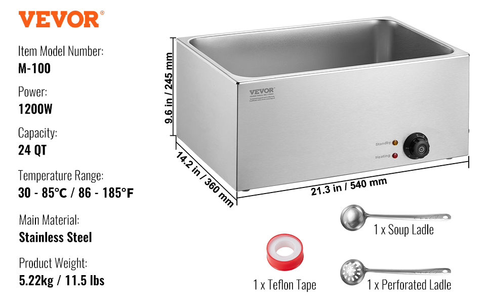 Tento ohrievač jedla z nehrdzavejúcej ocele má konštrukciu zabraňujúcu spáleniu za sucha a systém resetovania na ochranu pred poškodením. Teplotný rozsah 86 - 185℉ / 30 - 85 ℃ vám umožňuje vybrať si ideálne nastavenie pre vaše jedlo, ktoré bude kedykoľvek teplé a pripravené na podávanie.