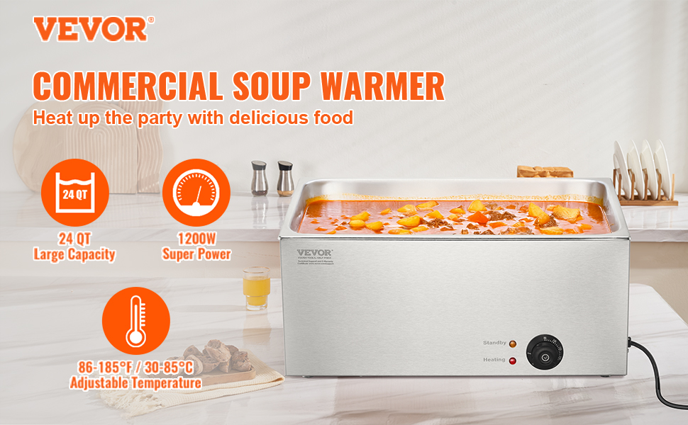 Tento veľkokapacitný ohrievač potravín pojme až 18 l / 19 qt, čo vám umožní ohrievať viac potravín naraz. Udržujte svoje chutné pokrmy trvalo teplé počas dlhšej doby, čo je ideálne pre rušné komerčné kuchyne.