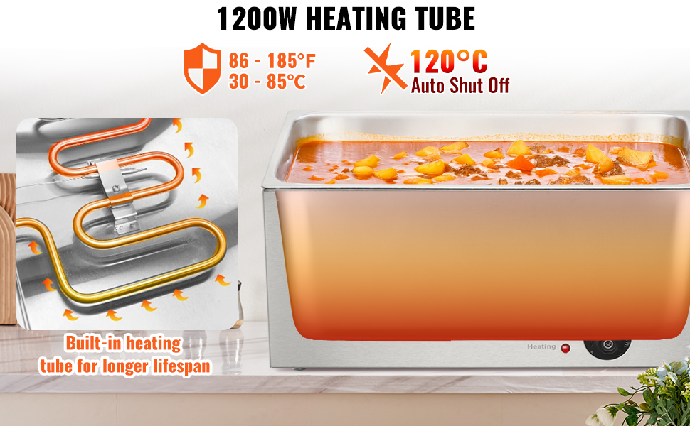 Ohrievacie teleso v ohrievači je starostlivo navrhnuté na rýchle a rovnomerné ohrievanie a ponúka väčšiu plochu na účinný prenos tepla. Teplotu môžete jednoducho nastaviť v rozmedzí 86 - 185℉ / 30 - 85 ℃, čím zabezpečíte, že vaše jedlo zostane pri ideálnej teplote na servírovanie.