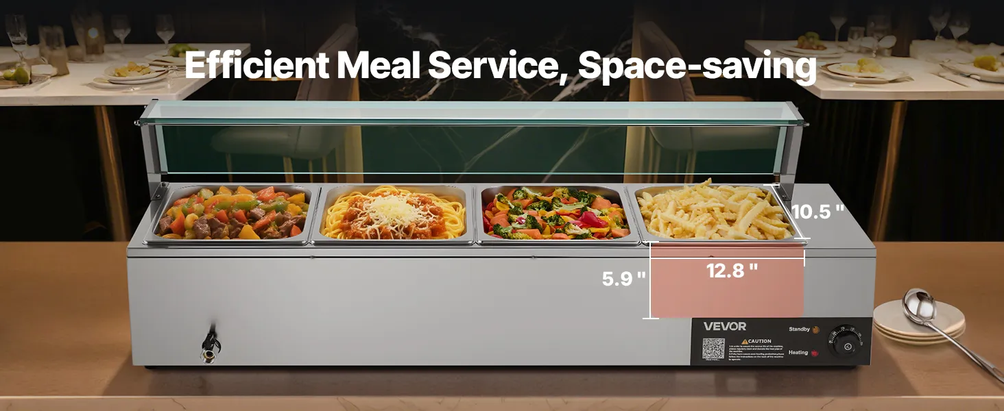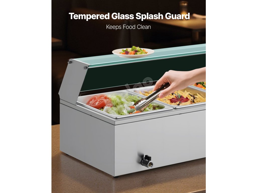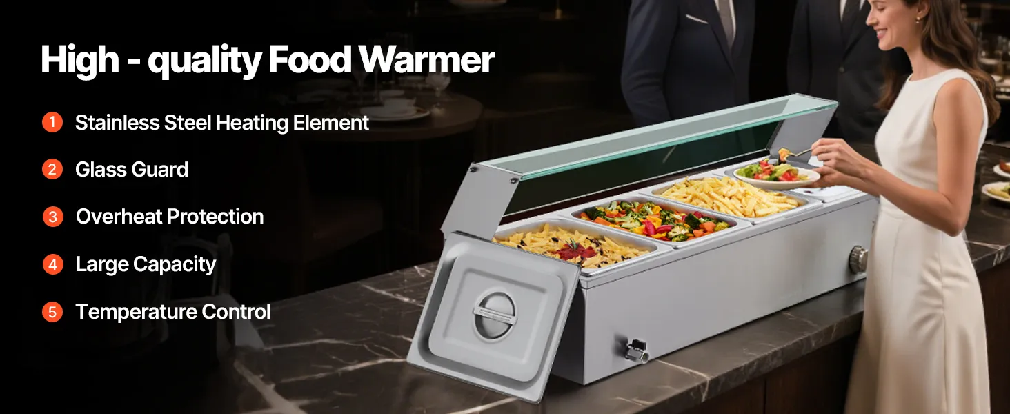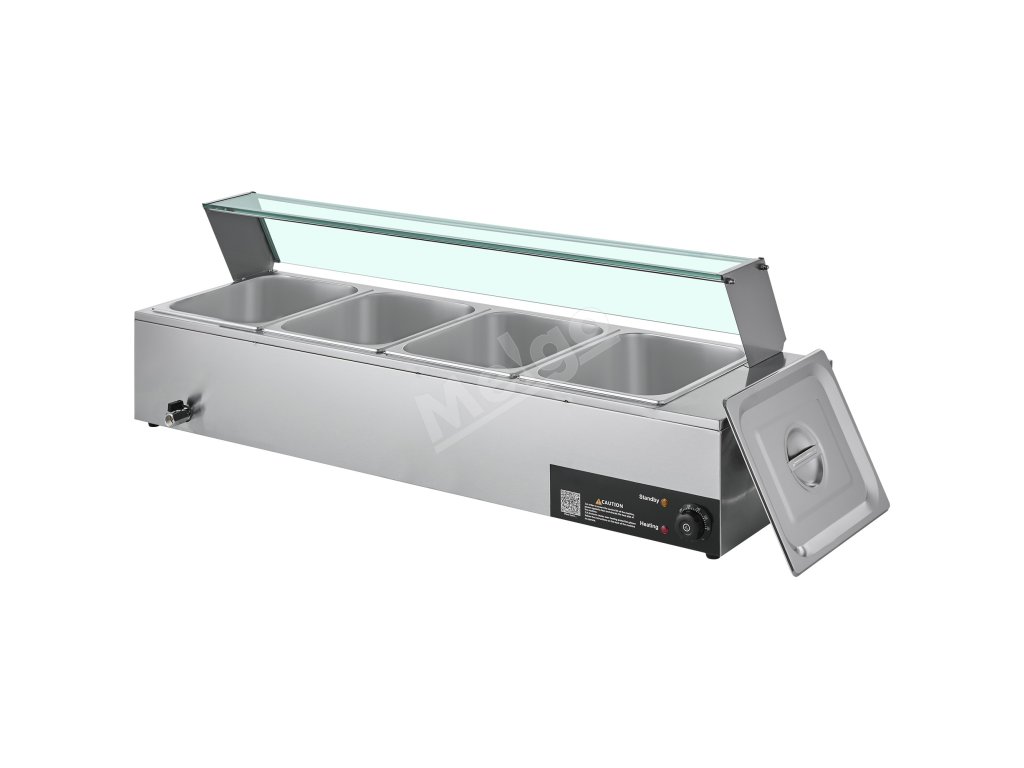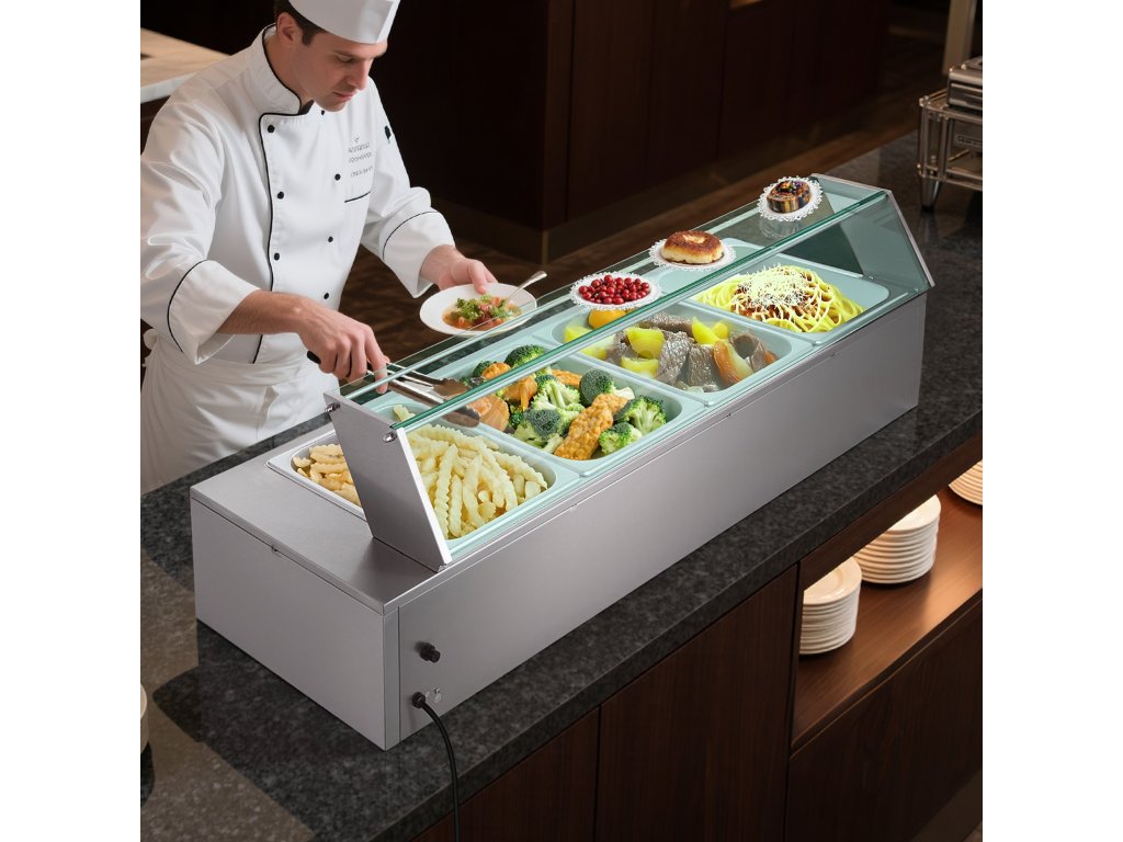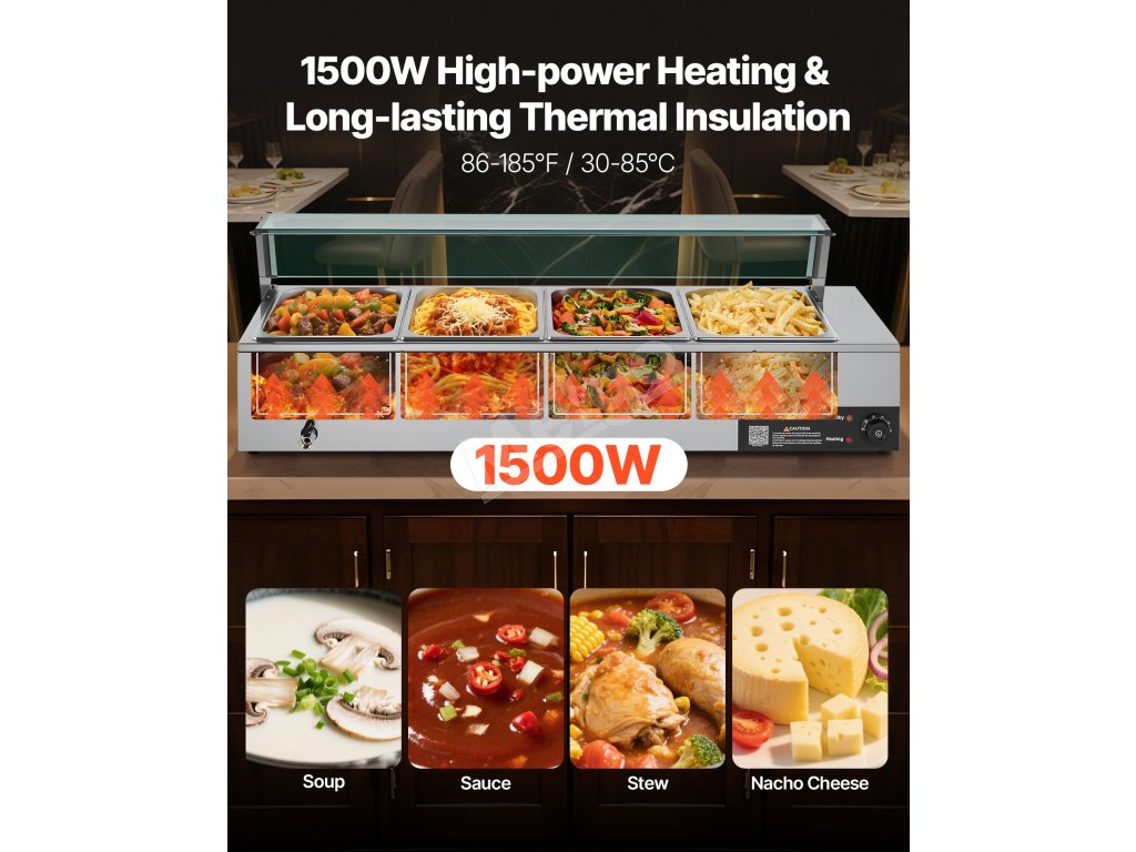 Táto ohrievacia stanica vyrobená z nehrdzavejúcej ocele pre dlhú životnosť a jednoduché čistenie je vybavená širokou ohrievacou trubicou v tvare U, nastaviteľnou teplotou (30-85 °C) a veľkou komorou ideálnou pre hotely, bufety, stánky s občerstvením a vonkajšie párty.