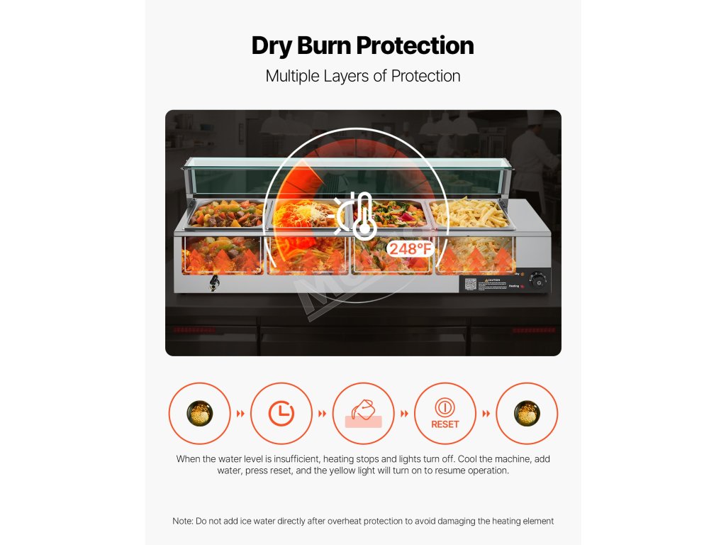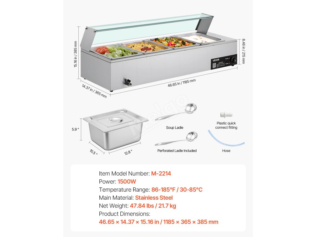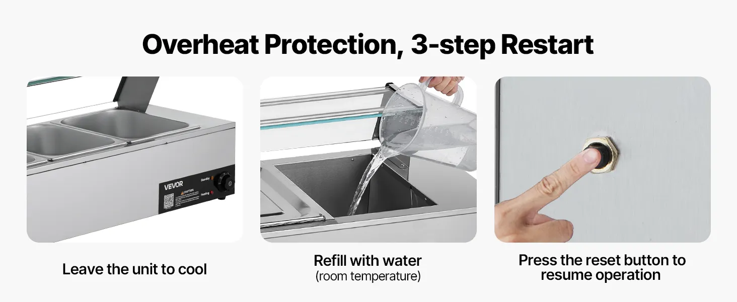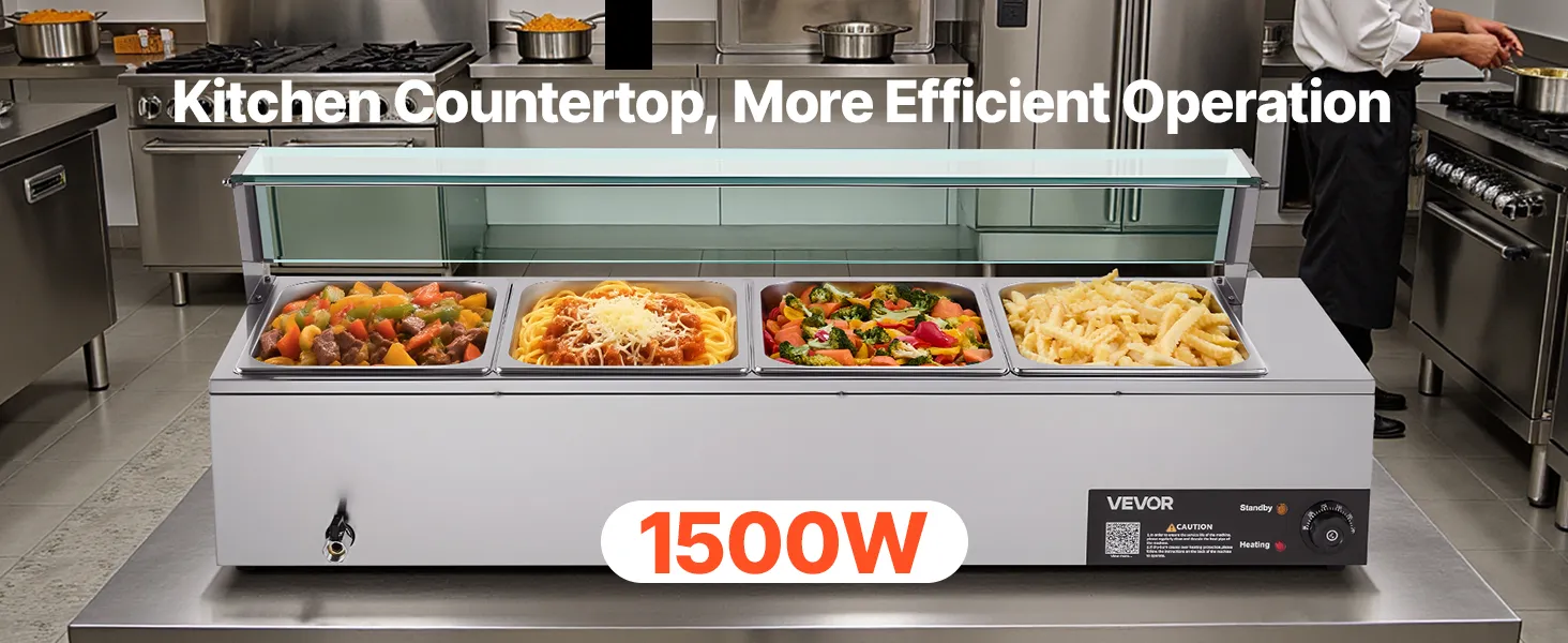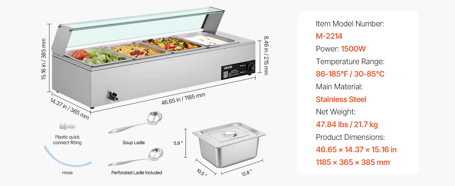 Táto ohrievacia stanica vyrobená z nehrdzavejúcej ocele pre dlhú životnosť a jednoduché čistenie je vybavená širokou ohrievacou trubicou v tvare U, nastaviteľnou teplotou (30-85 °C) a veľkou komorou ideálnou pre hotely, bufety, stánky s občerstvením a vonkajšie párty.