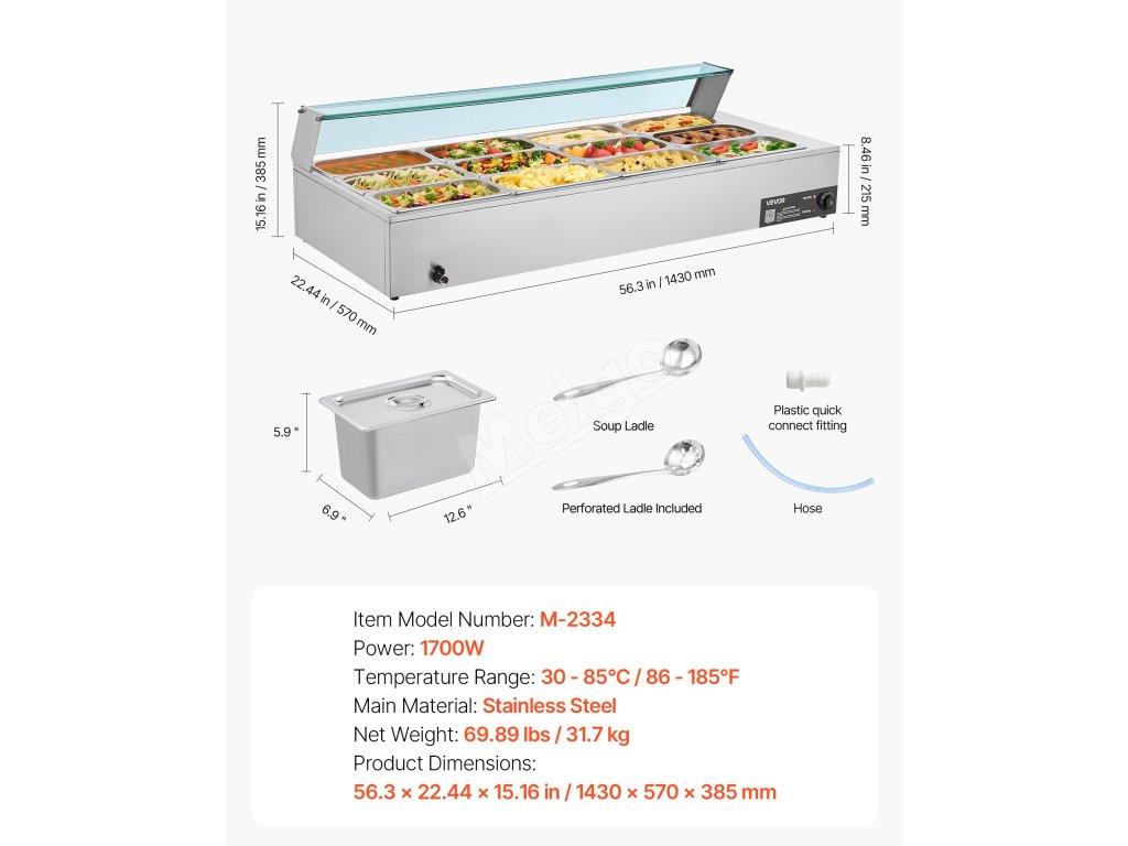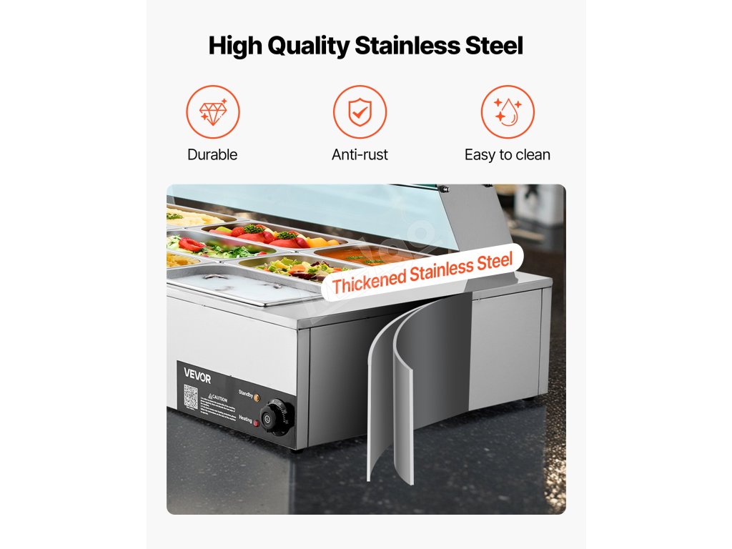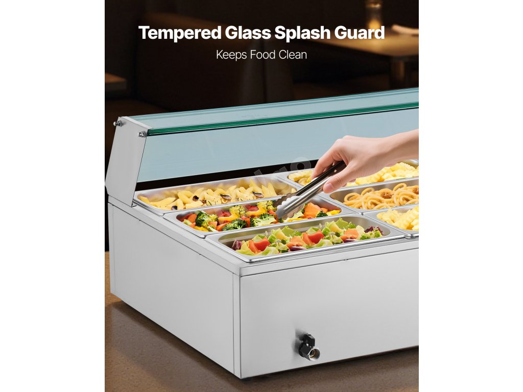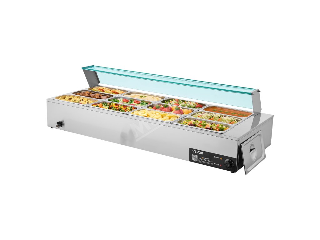 Tento 12-panvičkový ohrievač jedál z nehrdzavejúcej ocele so skleneným krytom je vybavený systémom proti spáleniu nasucho a tlačidlom reset na ochranu pred poškodením. Teplotný rozsah 86 - 185℉ / 30 - 85 ℃ vám umožní vybrať si ideálne nastavenie pre vaše jedlo, ktoré bude kedykoľvek teplé a pripravené na podávanie.