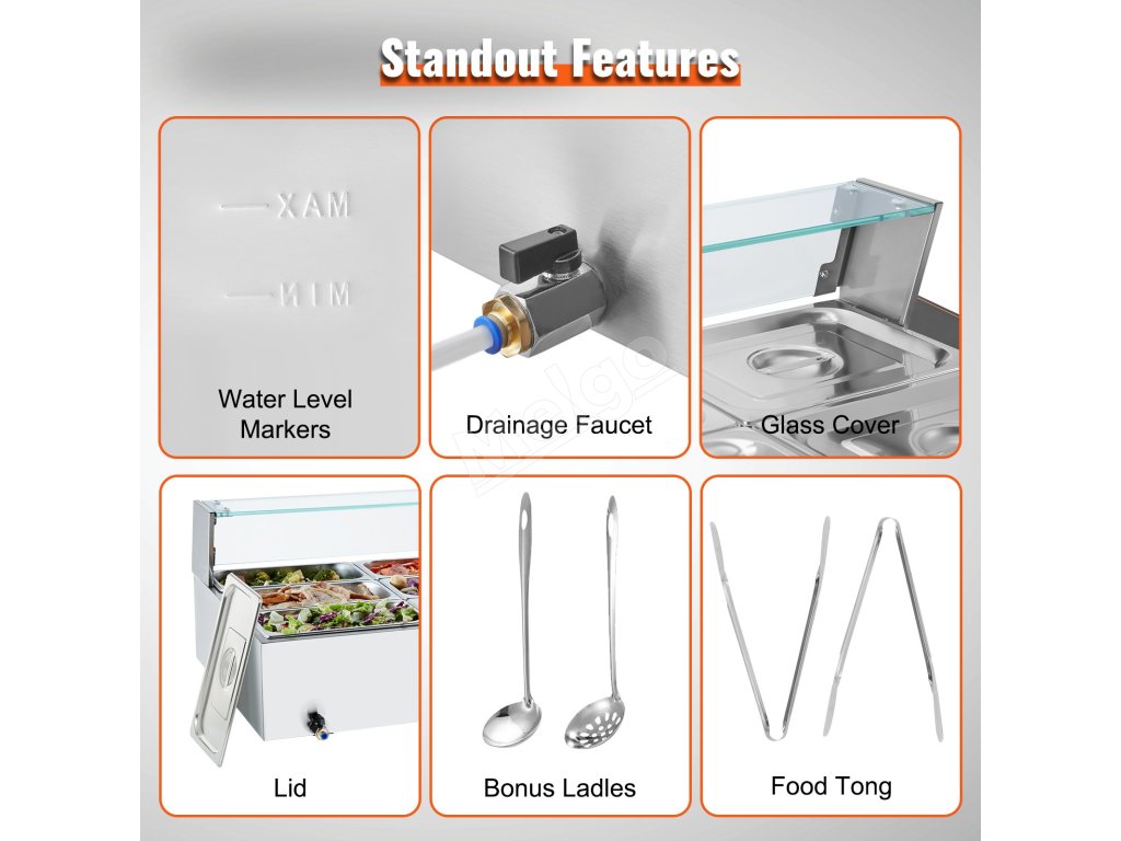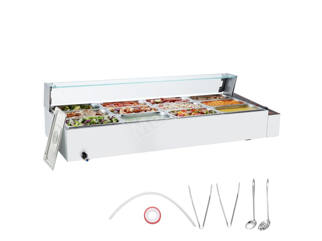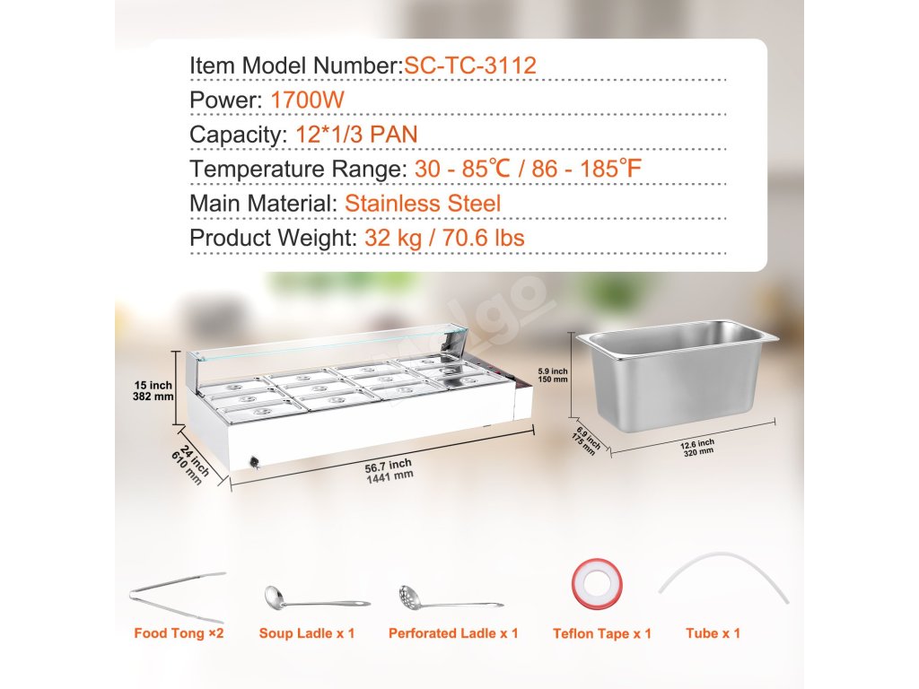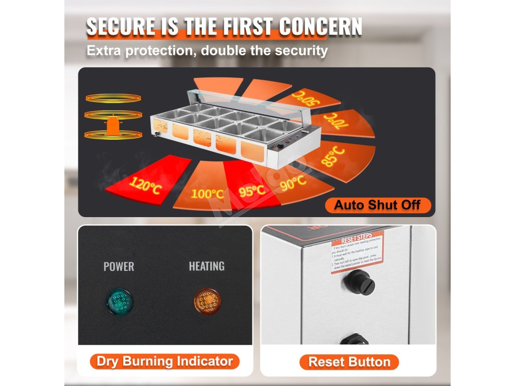 Elektrický zohrievač jedla 12×5QT 1700W nerez s krytom 86–185°F