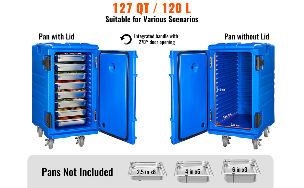 Izolačný box na jedlo 127 qt, predné plnenie, kolieska, rukoväte