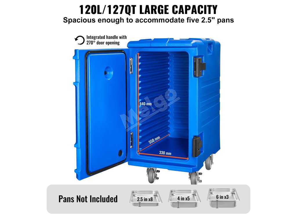 Izolačný box na jedlo 127 qt, predné plnenie, kolieska, rukoväte