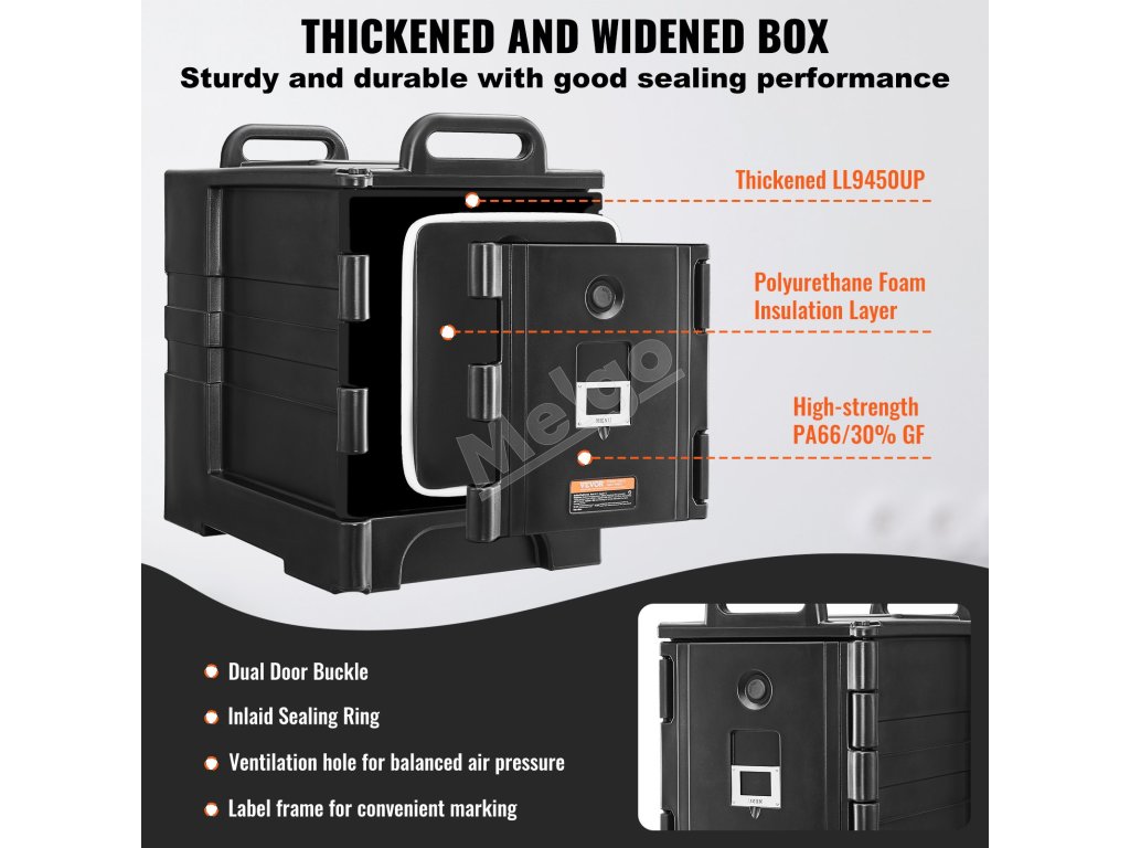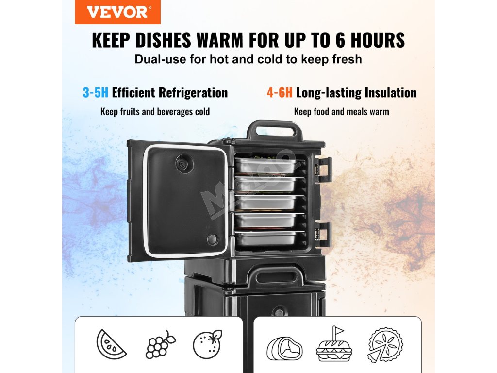 Náš teplý box pre catering je testovaný tak, aby udržal jedlo teplé 4 - 6 hodín alebo chladené 3 - 5 hodín, čím účinne uzamkne čerstvé prísady. Odporúča sa skladovať teplé a studené potraviny oddelene.
