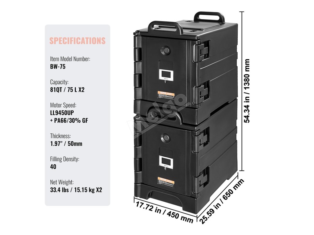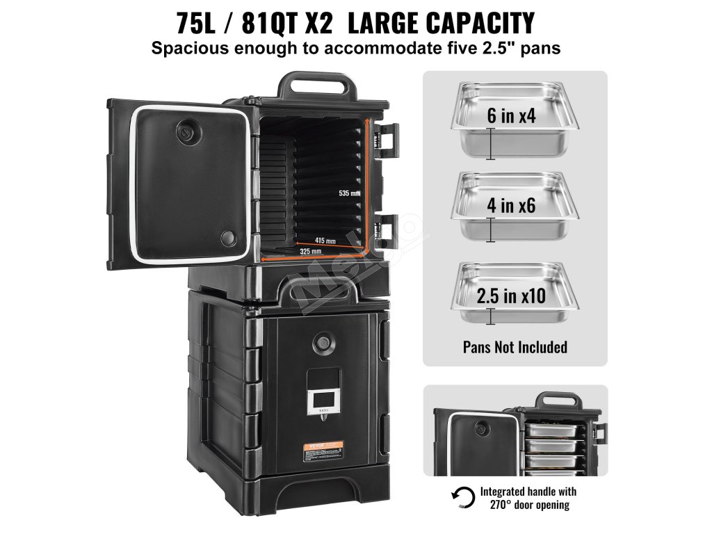 Izolovaný box na gastronádoby 81 qt × 2, predné plnenie, stohovateľný