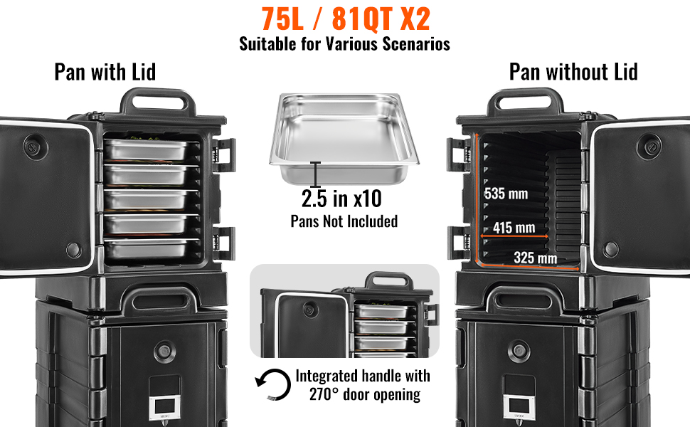 S kapacitou 81 QT/75 l (mokrý objem) pojme 5 2,5" panvíc, 3 4" panvice alebo 2 6" panvice (Poznámka: Panvice nie sú súčasťou balenia).