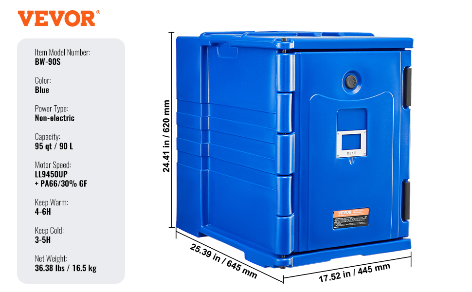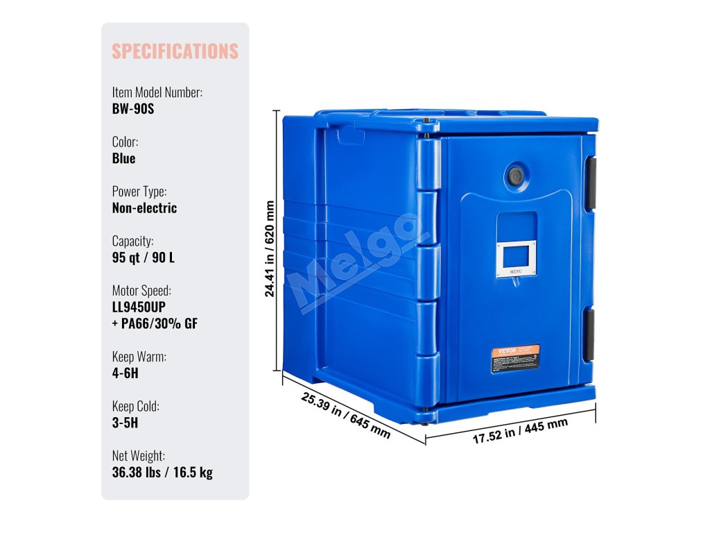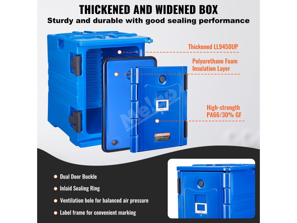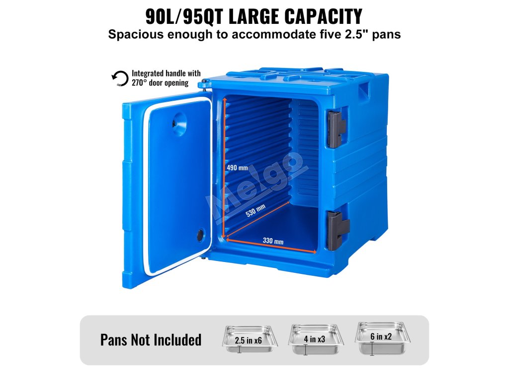 Izolovaný box na jedlo 95 Qt, predný vstup, s dvoma prackami a madlami