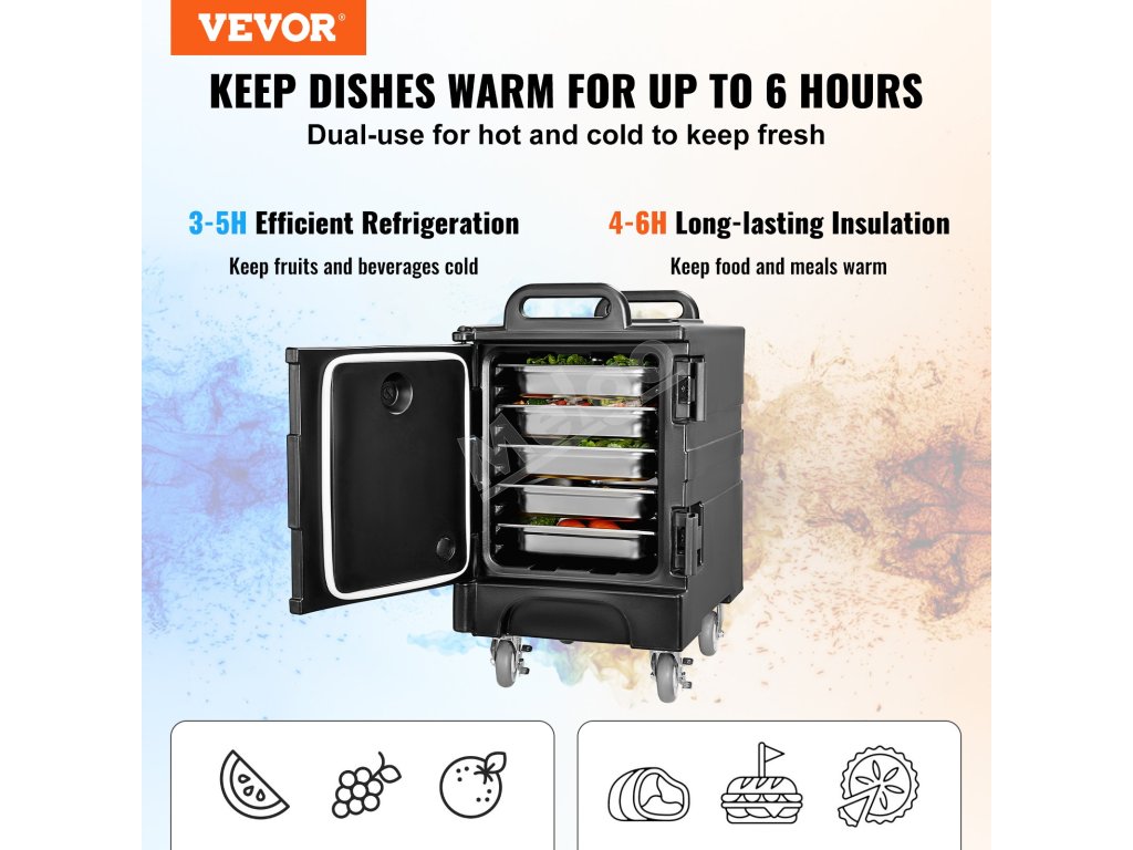 Náš teplý box pre catering je testovaný na udržanie teplých potravín počas 4 - 6 hodín alebo chladných počas 3 - 5 hodín, čím účinne uzamkne čerstvé prísady. Teplé a studené potraviny sa odporúča skladovať oddelene.