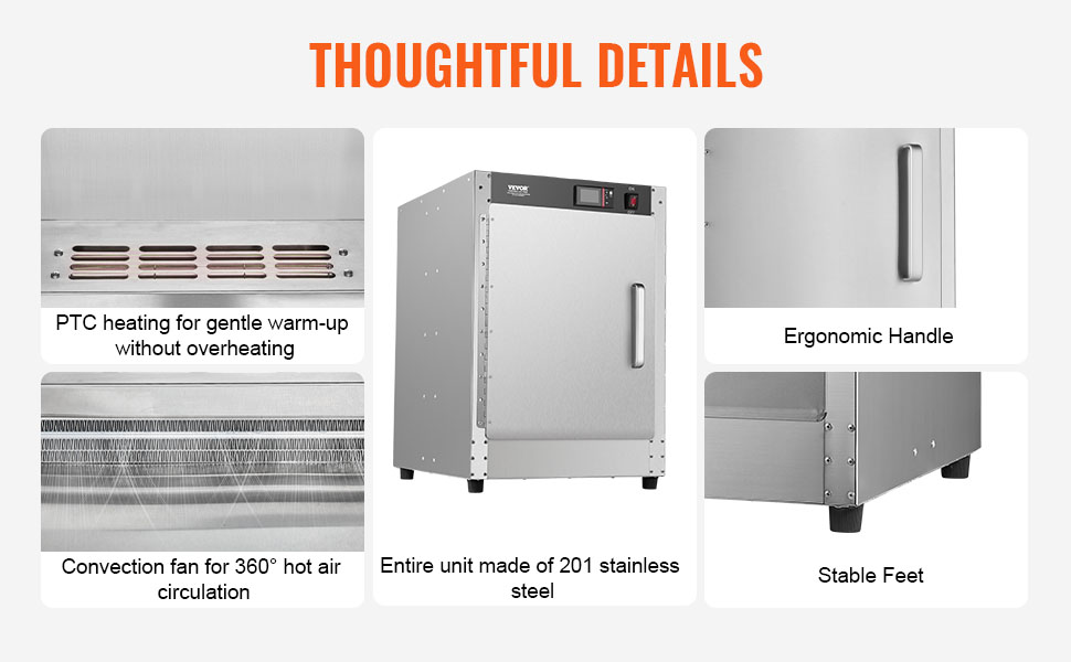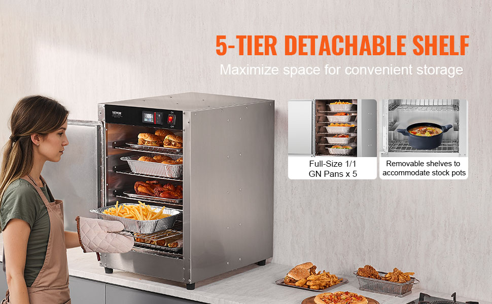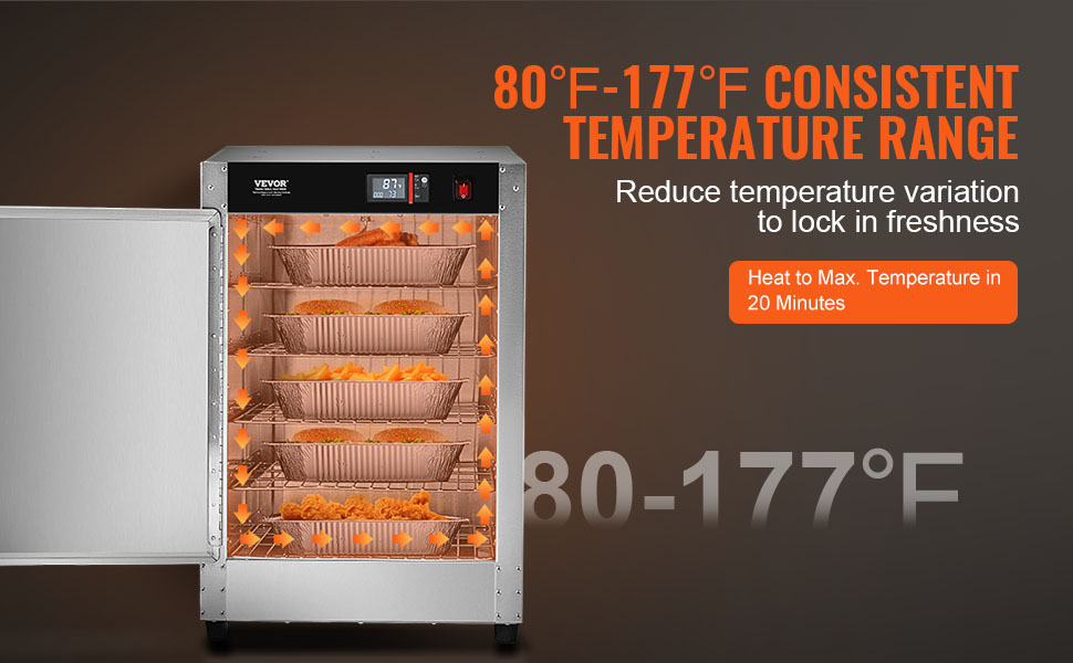 Naša ohrievacia skriňa na potraviny poskytuje stálu teplotu, udržiava pokrmy teplé a čerstvé bez vysušovania, takže vaše chutné jedlo vyzerá ako čerstvo uvarené.