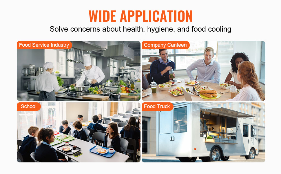 Komerčná ohrievacia skriňa na potraviny sa široko používa v komerčných zariadeniach, ako sú kaviarne, pekárne, kaviarne, bufety, samoobslužné pulty, bankety, predajne rýchleho občerstvenia alebo predajne potravín. Ideálne na skladovanie pizze, vaječných koláčov, vyprážaných kurčiat, hamburgerov a ďalších.