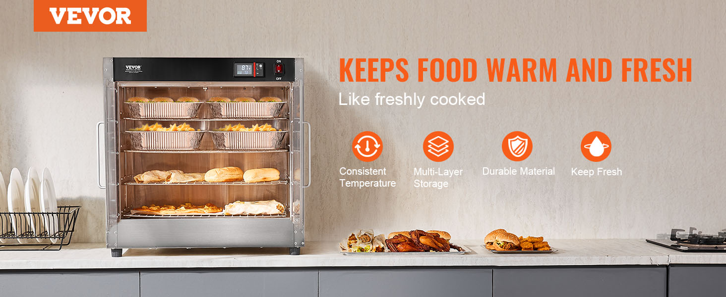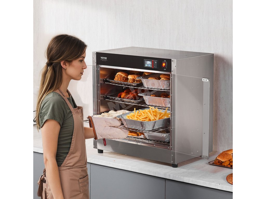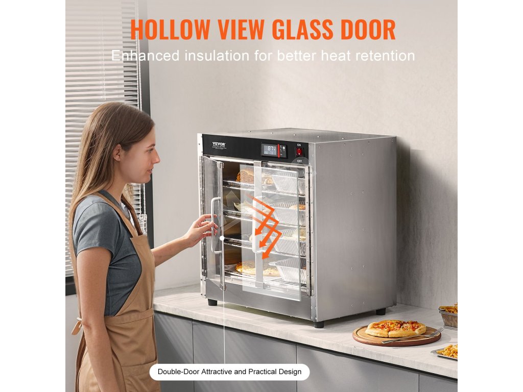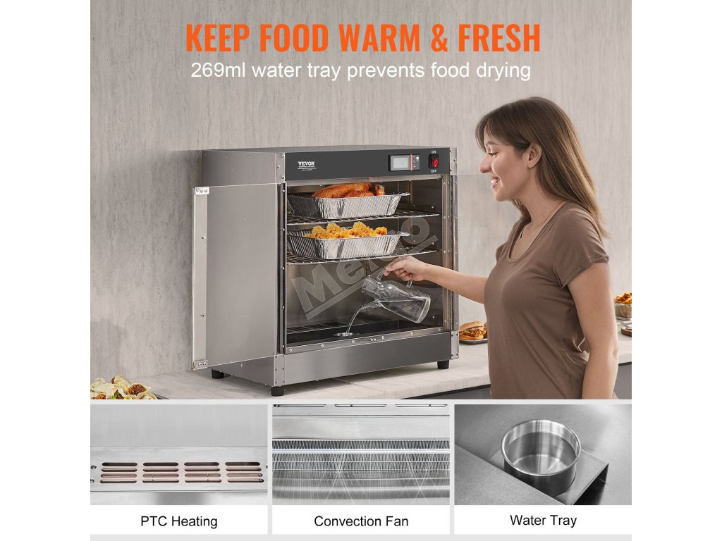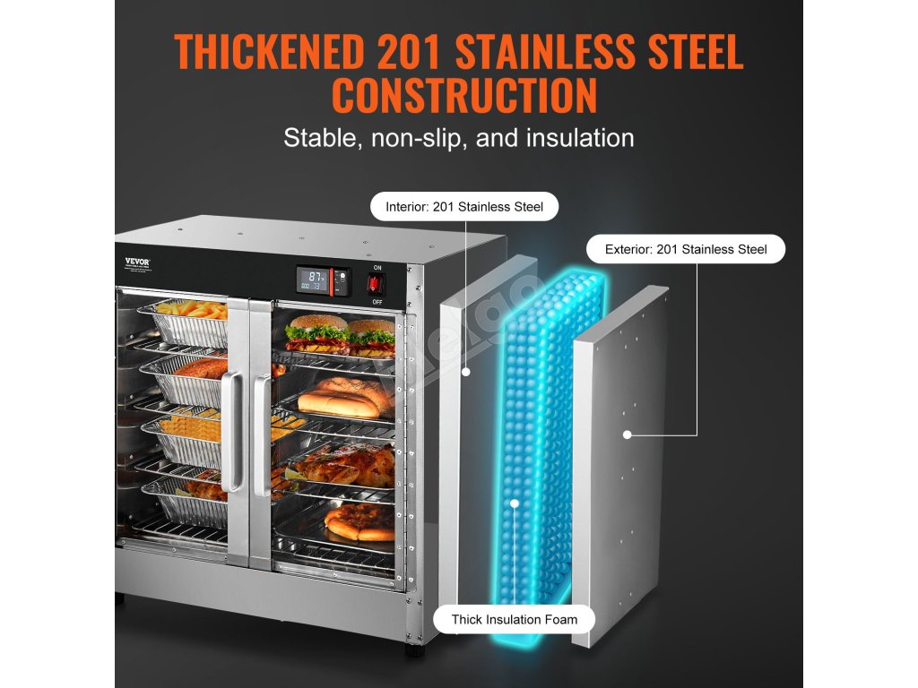 Naša ohrievacia skriňa na potraviny poskytuje stálu teplotu, udržiava pokrmy teplé a čerstvé bez vysušovania, takže vaše chutné jedlo vyzerá ako čerstvo uvarené.