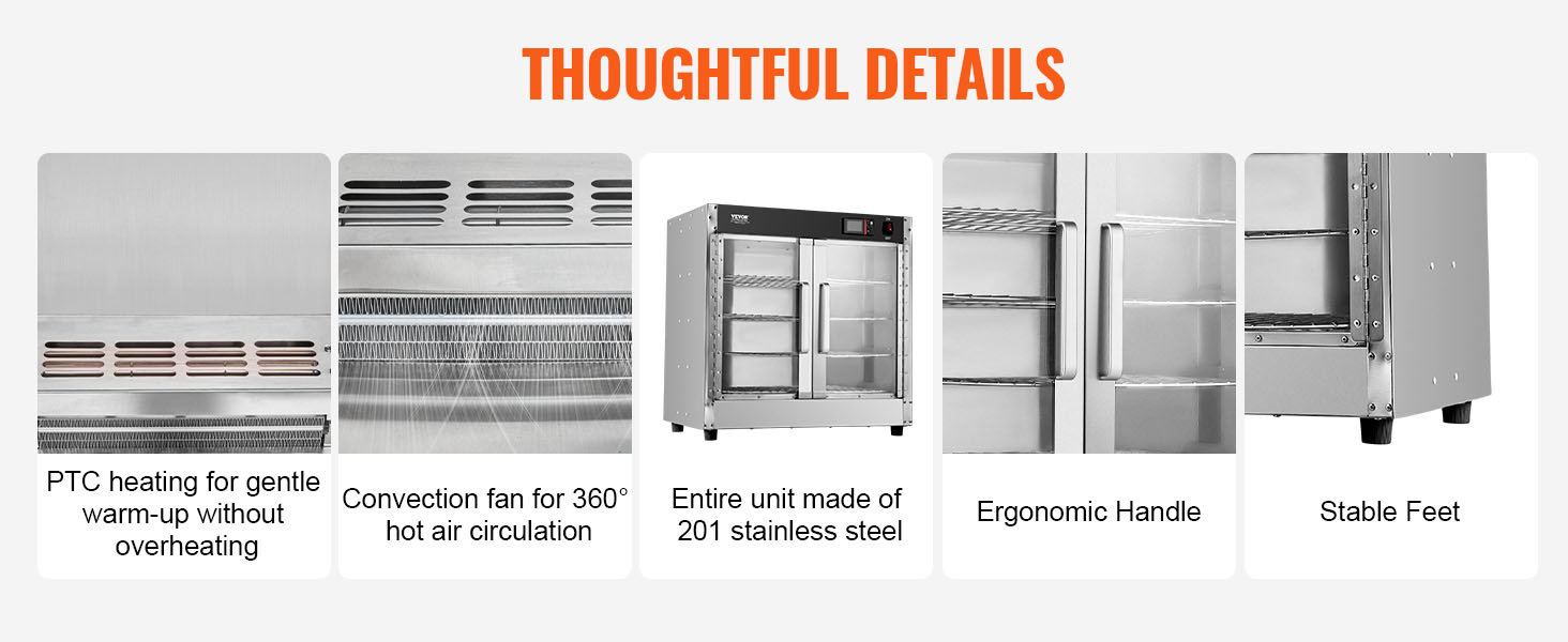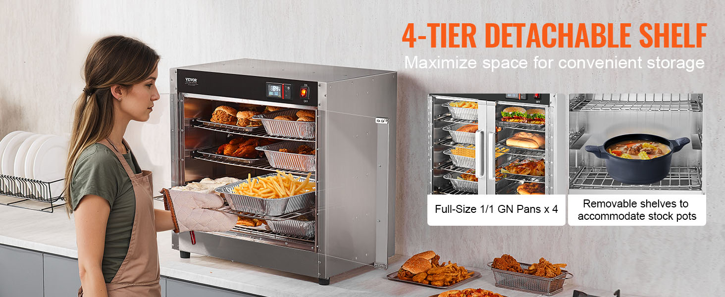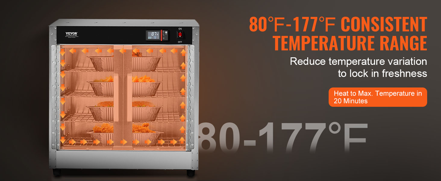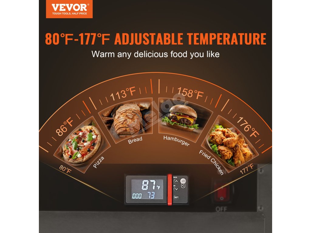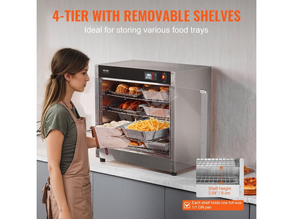 Naša ohrievacia skriňa na potraviny poskytuje stálu teplotu, udržiava pokrmy teplé a čerstvé bez vysušovania, takže vaše chutné jedlo vyzerá ako čerstvo uvarené.