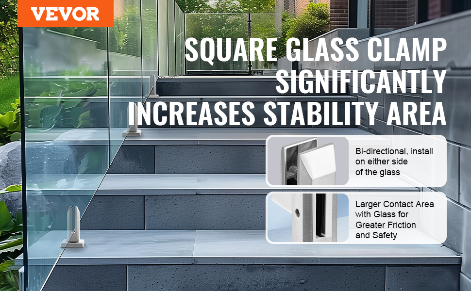 Na rozdiel od svoriek na sklo v tvare U má táto štvorcová svorka dvojité otvory na lepšiu podporu a silnú nosnosť. Štvorcový dizajn poskytuje väčšiu kontaktnú plochu, čím ponúka väčšiu stabilitu a bezpečnosť.